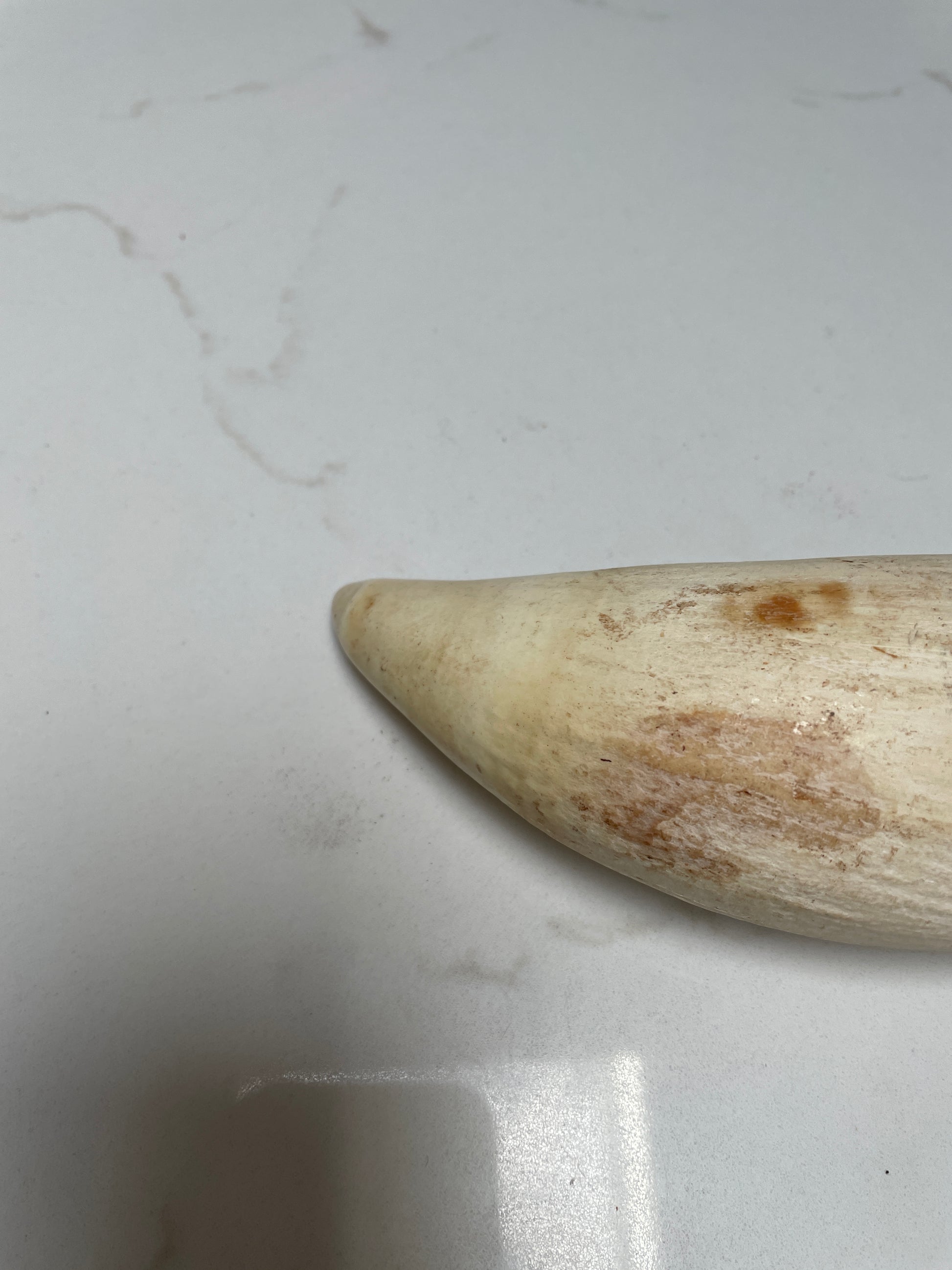 Beautiful unpolished, weighty sperm whale tooth that is wide and perfect for scrimshaw.