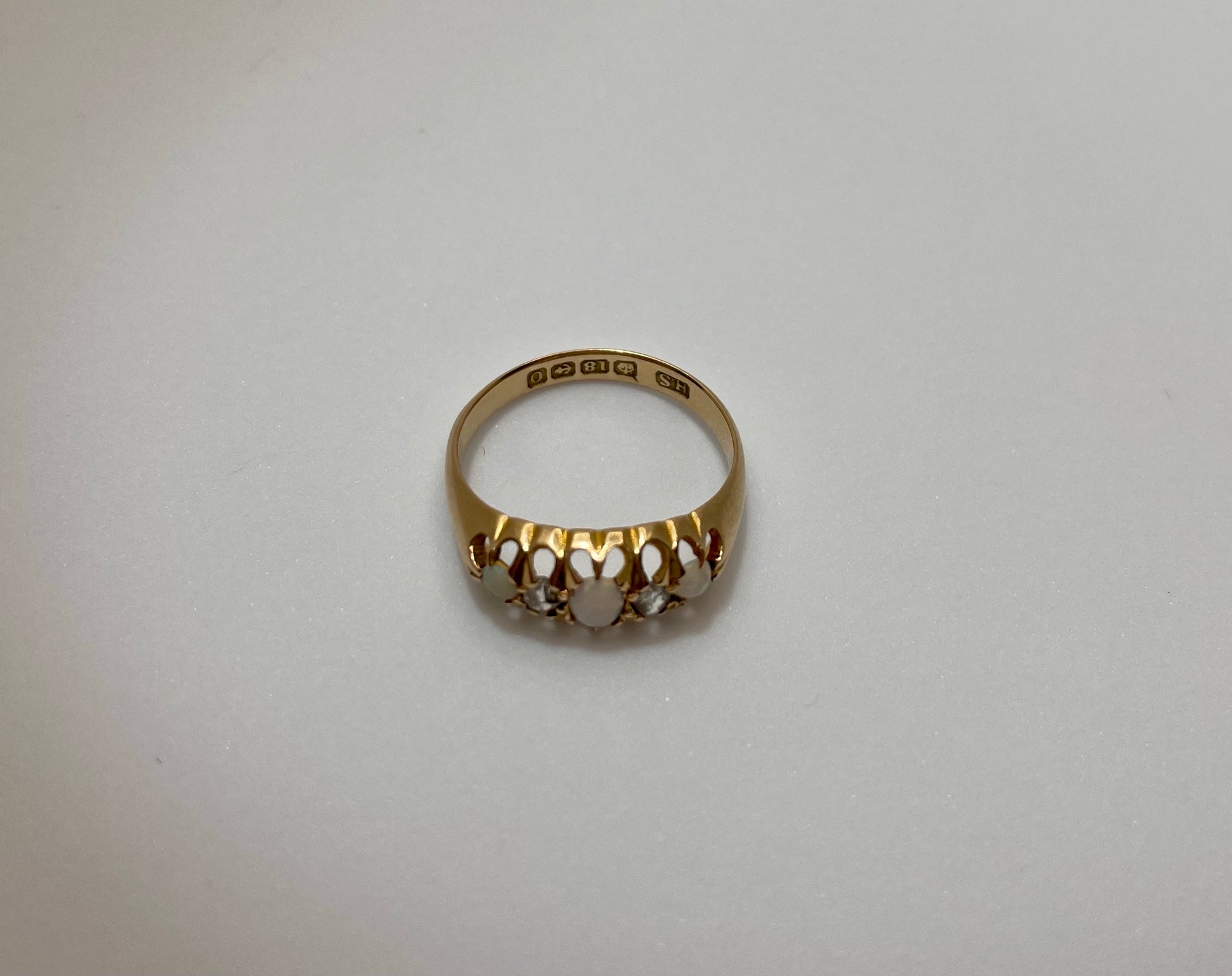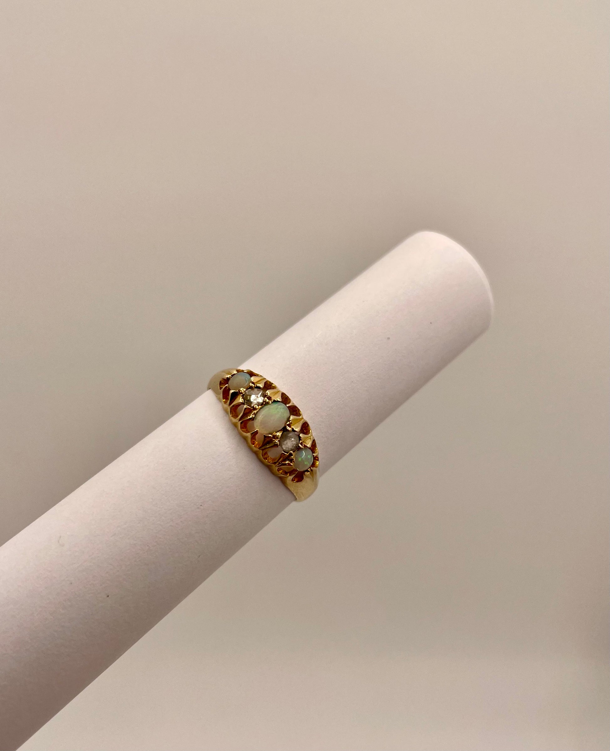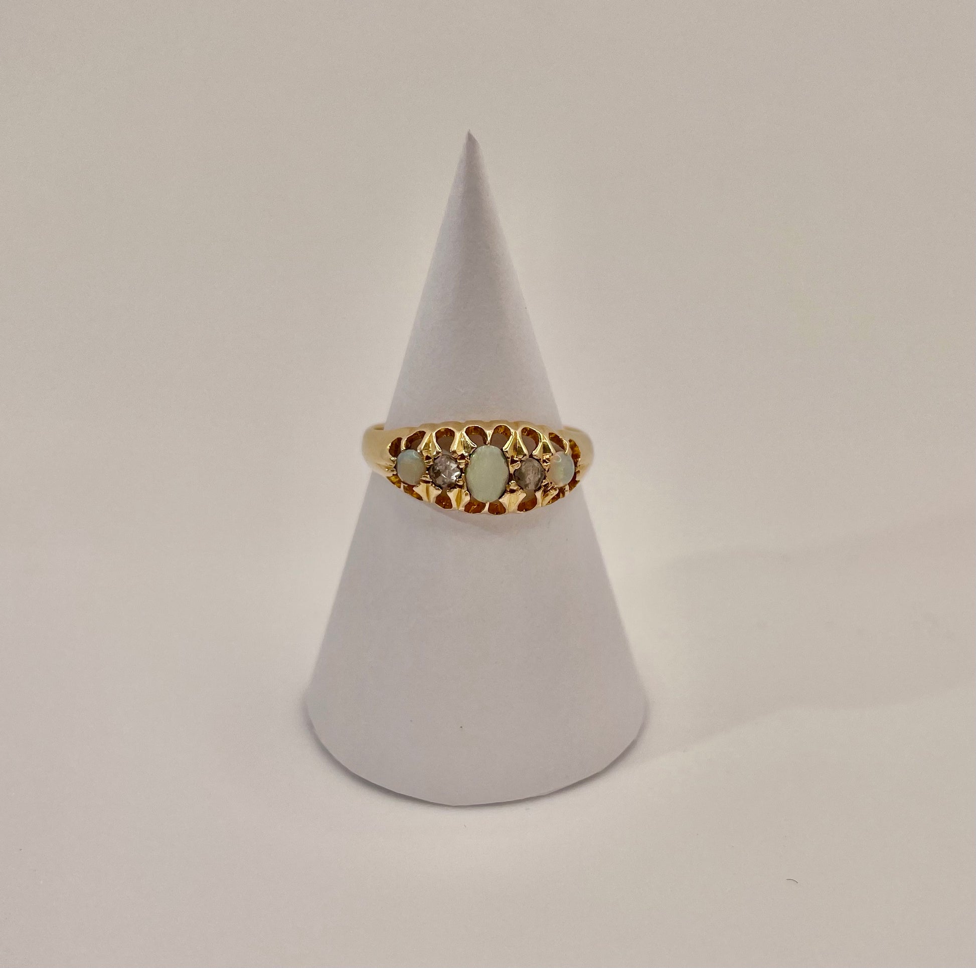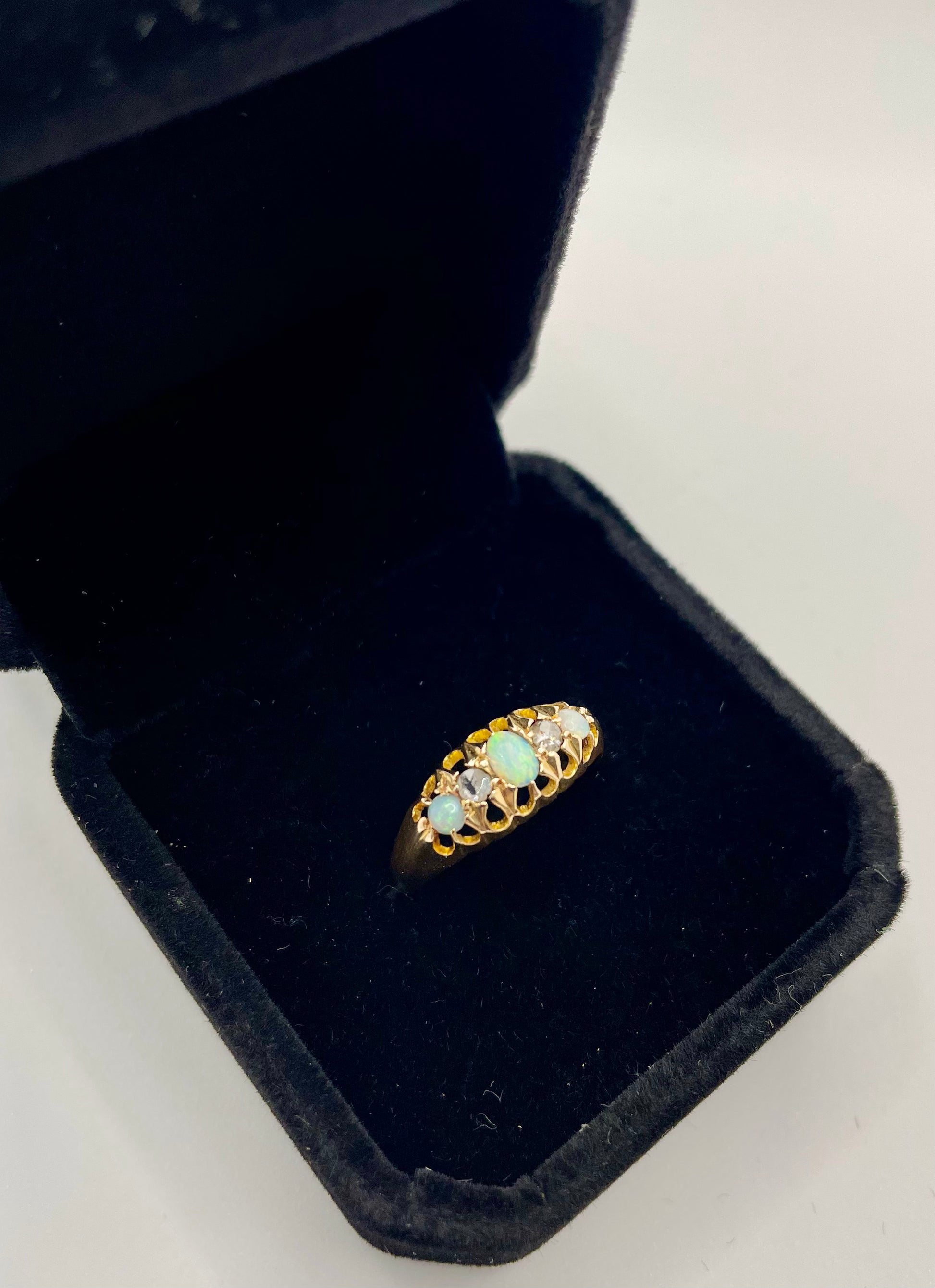 Beautiful early 20th century 18ct gold Opal and Rose cut diamond five stone ring.