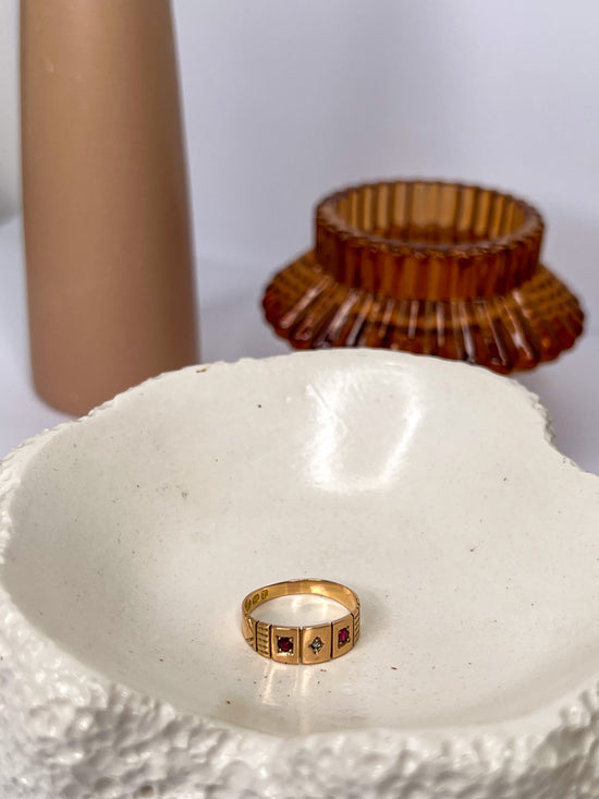 A fine, late Victorian 15ct rose gold and ruby ring. Hallmarks for Birmingham, 1891.