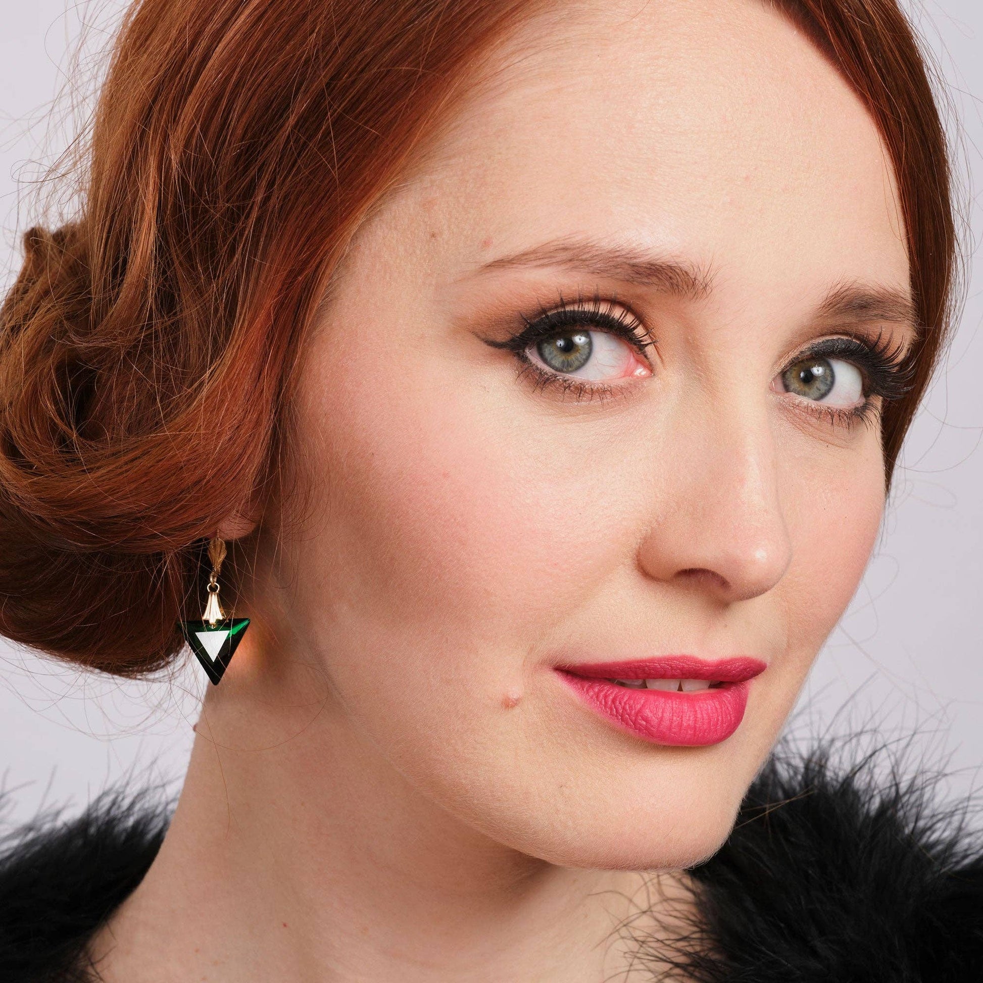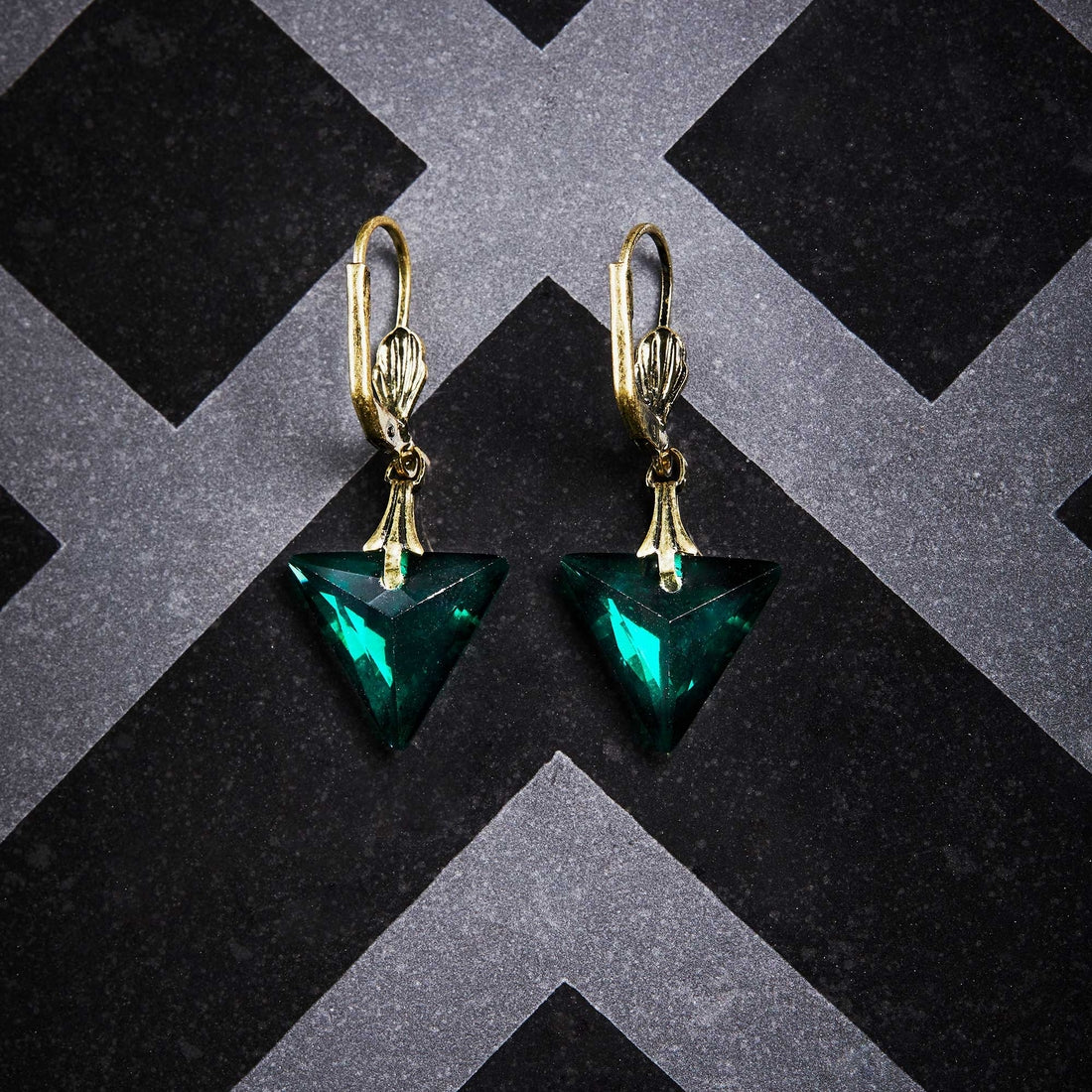 Inspired by the 1920s and the Art Deco era these sophisticated triangle 20s earrings are quietly understated and can be worn for both day and night. These earrings have an Egyptian feel to them with their graphic shape and ornate fastening. Reminiscent of the classic jewellery styles of the 1920s.