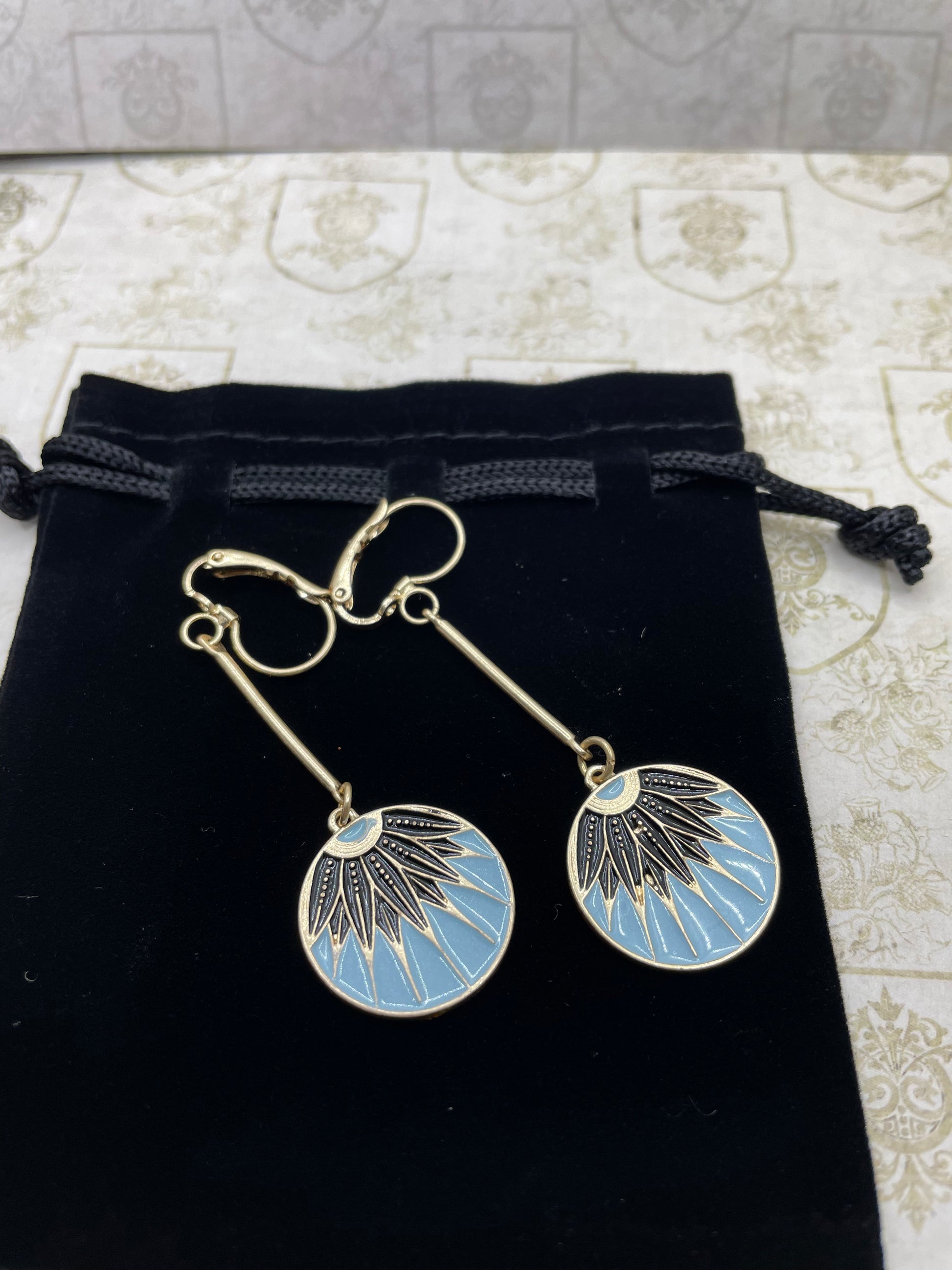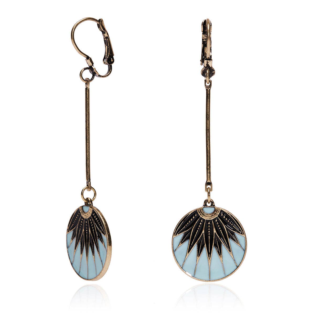 Inspired by an original 1920s compact mirror case, these Art Deco leaf design disc earrings are intricate and unique. Reminiscent of the 1920s fascination of all things Egyptian these are a real treasure to be discovered and desired.