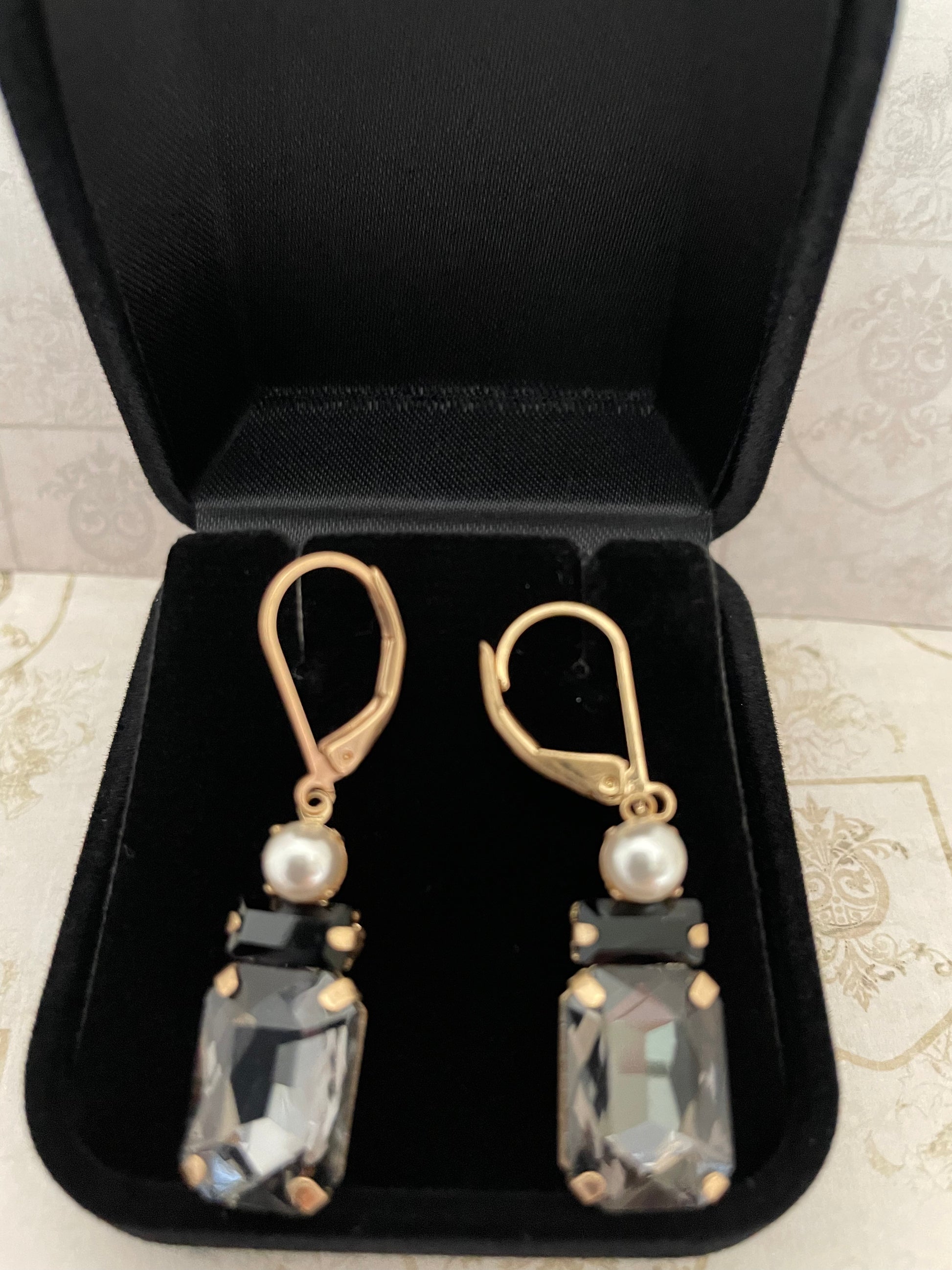 Strike a pose... These art deco oblong earrings scream on screen glamour. Perfect for adding that finishing touch to a flapper outfit or just to make a statement all of their own.