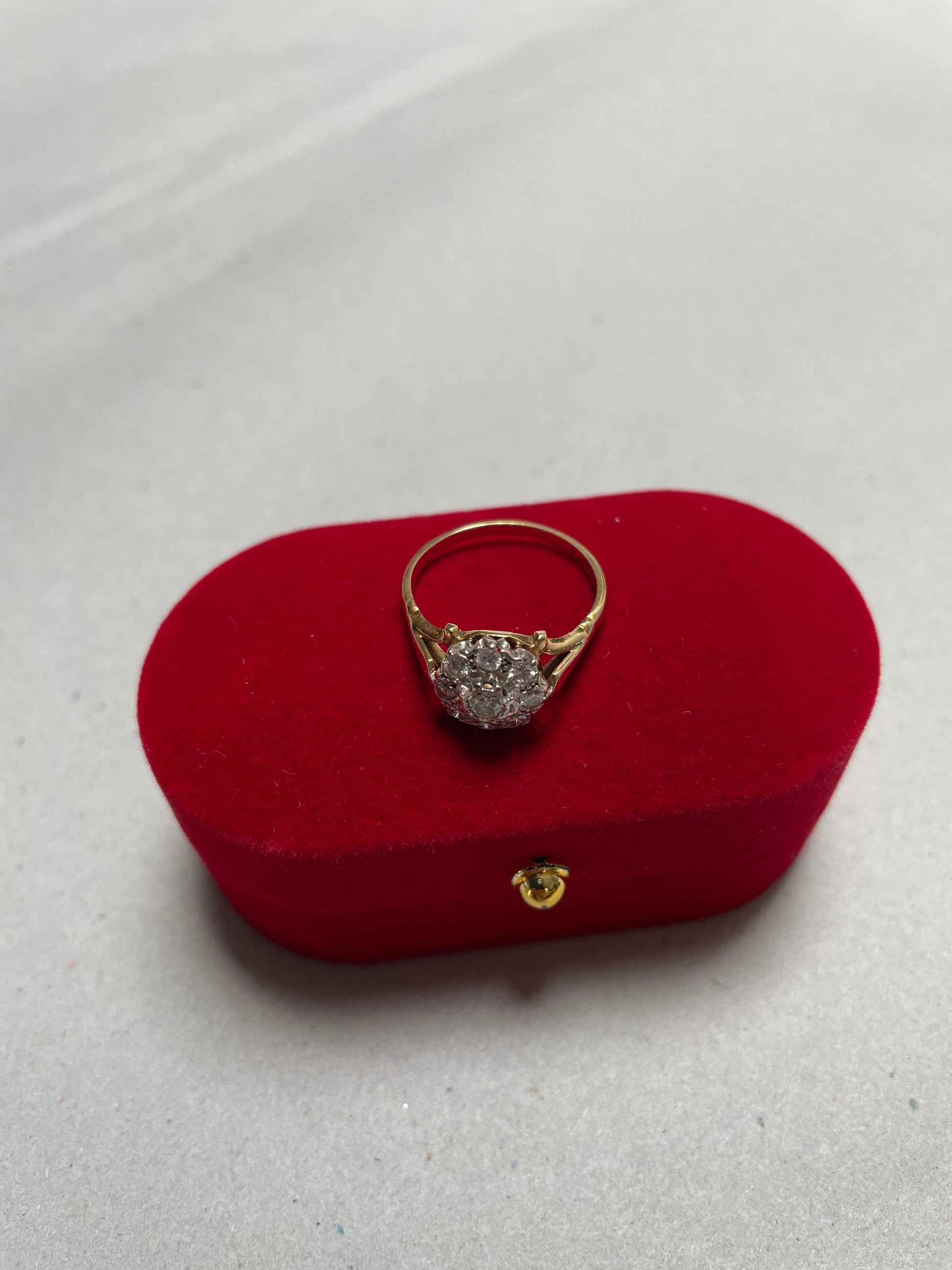 A brilliant-cut diamond cluster ring in flower formation, 1940s/50s.