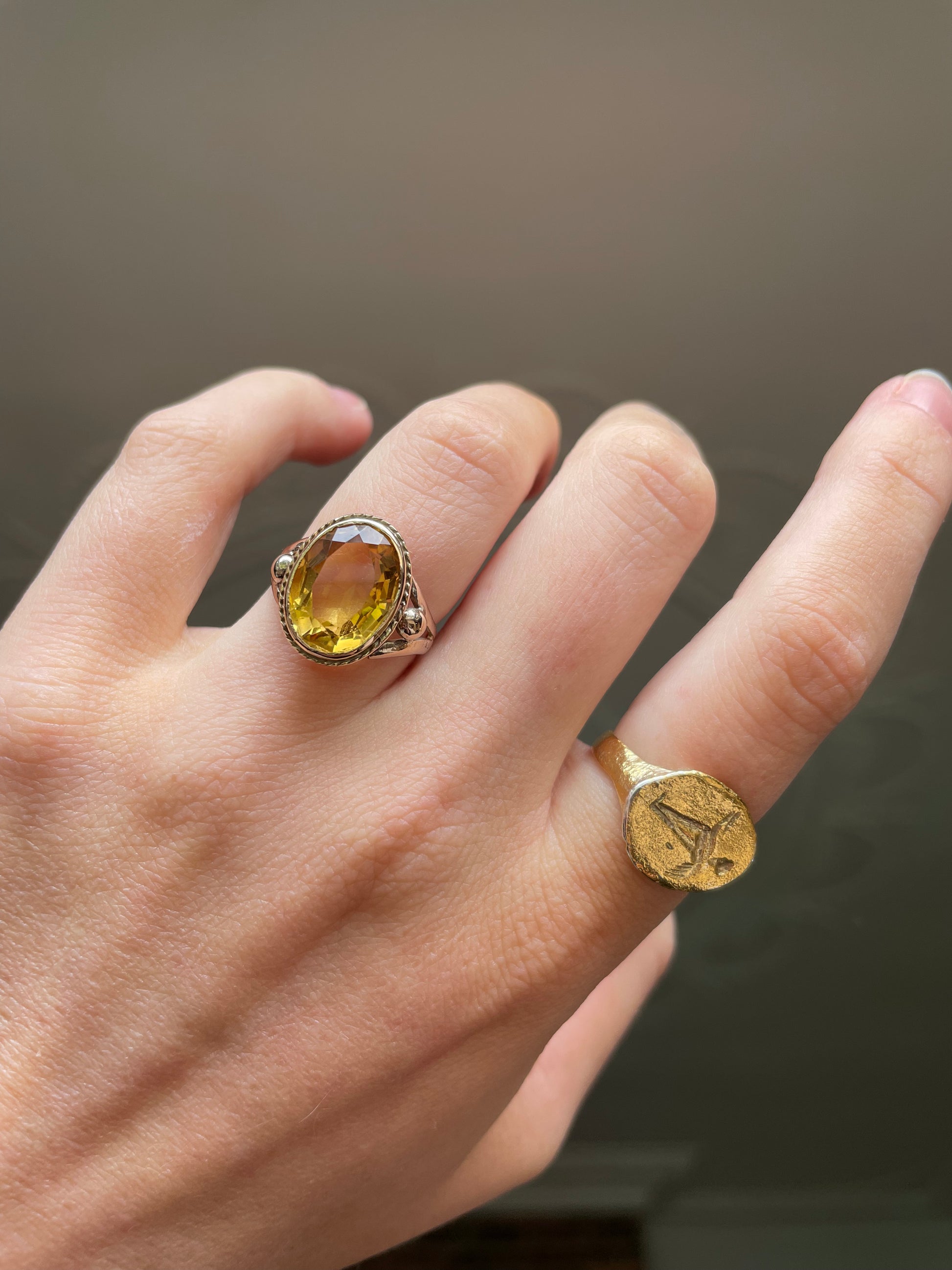 Gorgeous oval citrine cocktail ring, with split side detail.