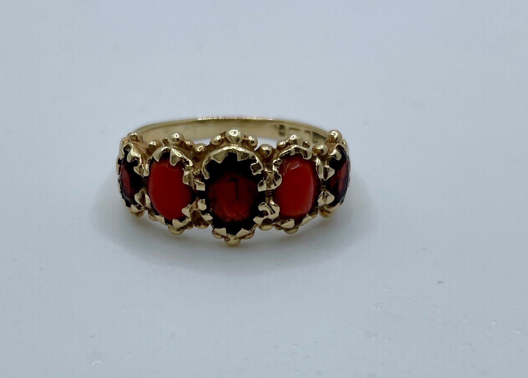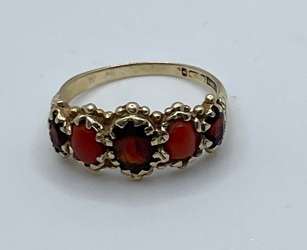 Coral And Garnet Five Stone Bridge Ring