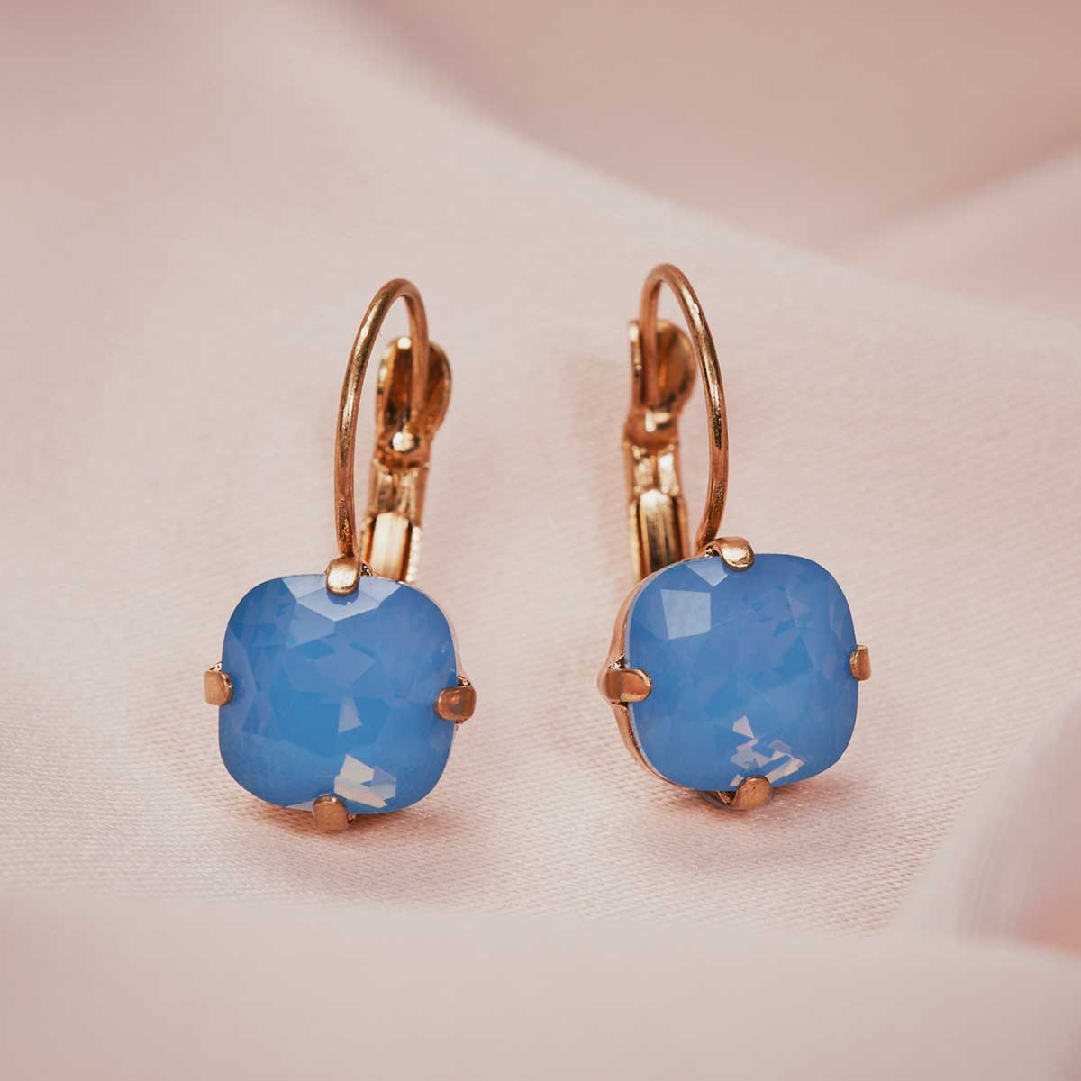 These vintage inspired cushion cut earrings have a glass cutting effect, giving them an amazing sparkle, vibrancy and light. A simple but effective square shape earring that will easily add some 1950's colour to any outfit. Perfect for styling with a full circle skirt for the complete 50's look.