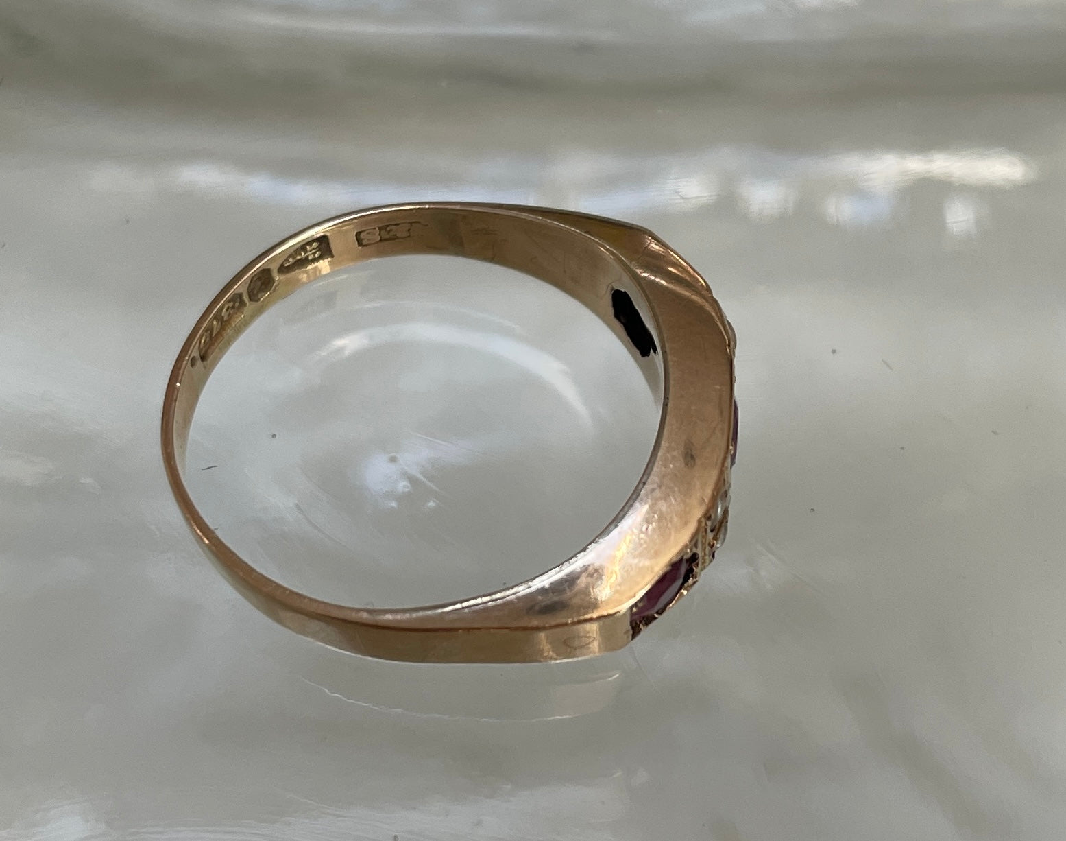 Lovely early 20th century red paste ring with split pearls. Hallmarks for Chester.