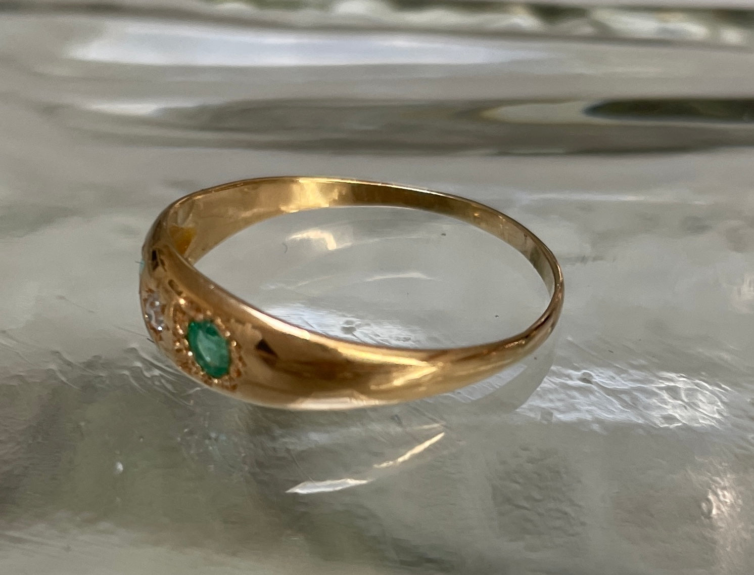 Edwardian 18ct Gold Emerald & Diamond Three Stone Ring