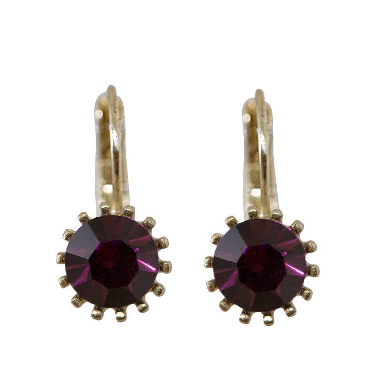 French clip round Swarovski crystal earrings on gold tone. A beautiful earring with sparkle and colour burst.