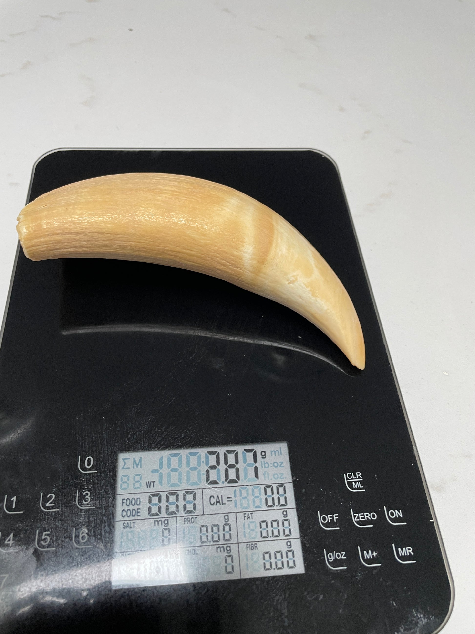 Large unpolished sperm whale tooth measuring approximately 17.5cm and 287g