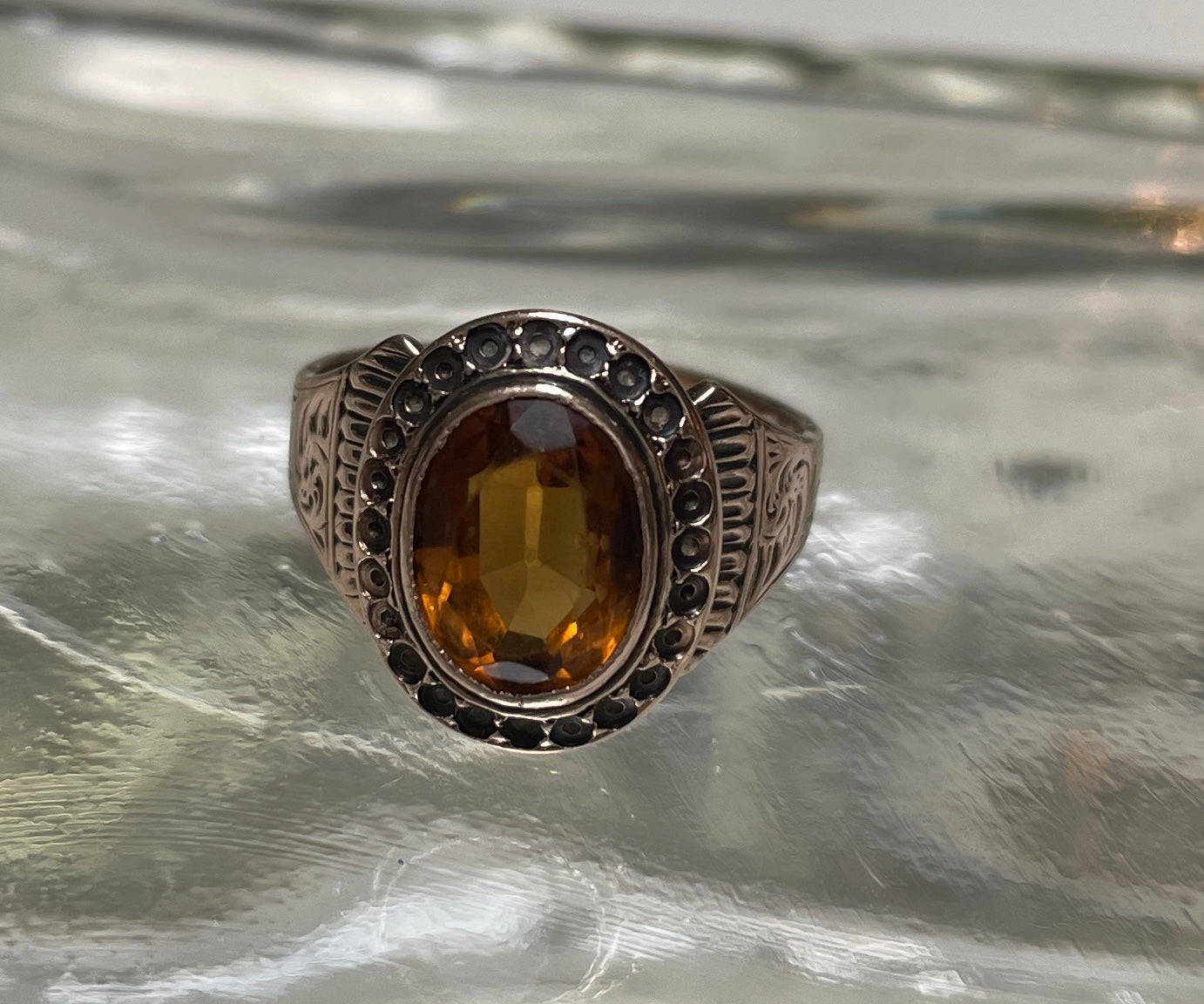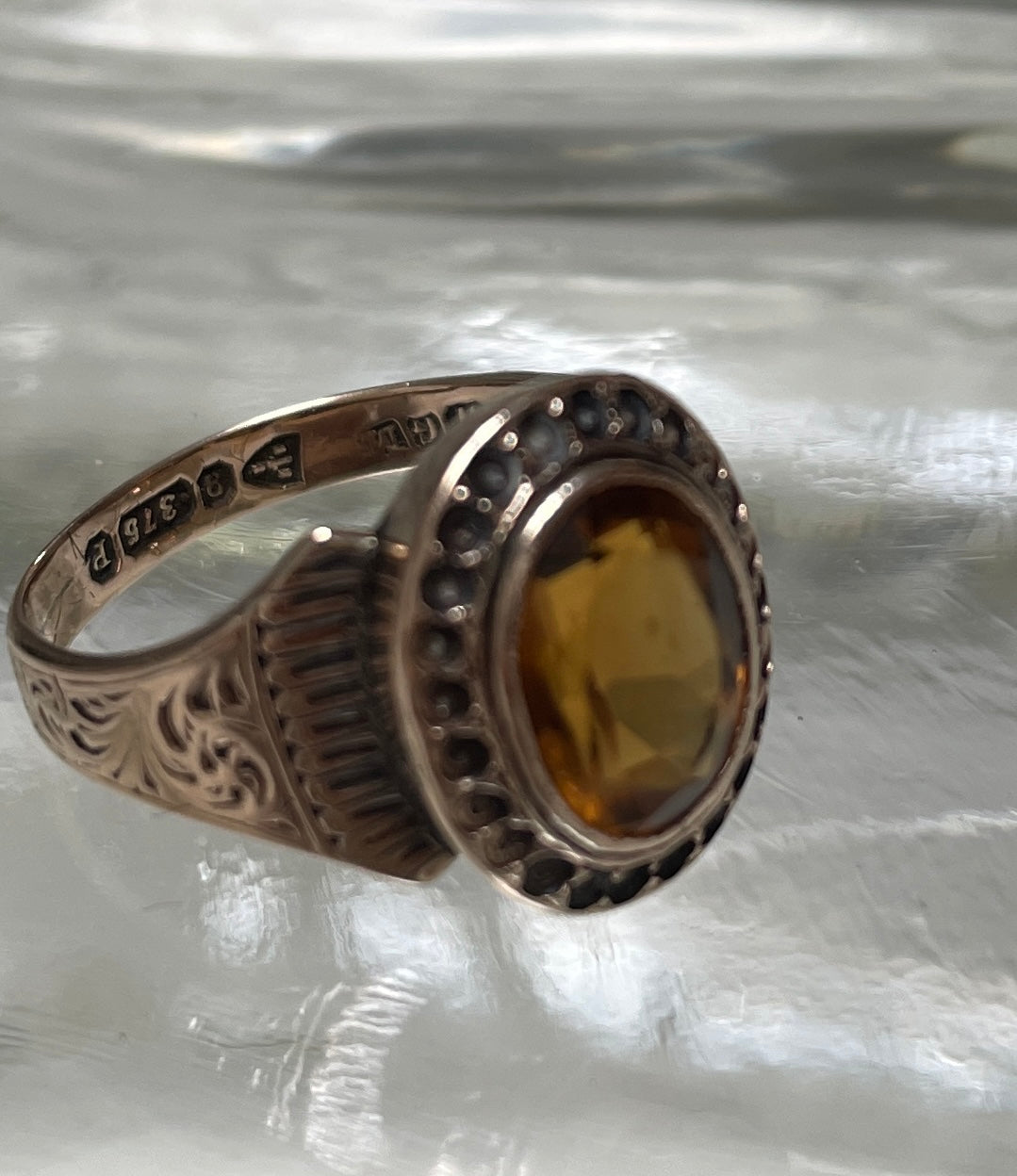 Beautiful late Victorian citrine ring hallmarked for Chester 1898. Missing seed pearl border but still lovely as is.