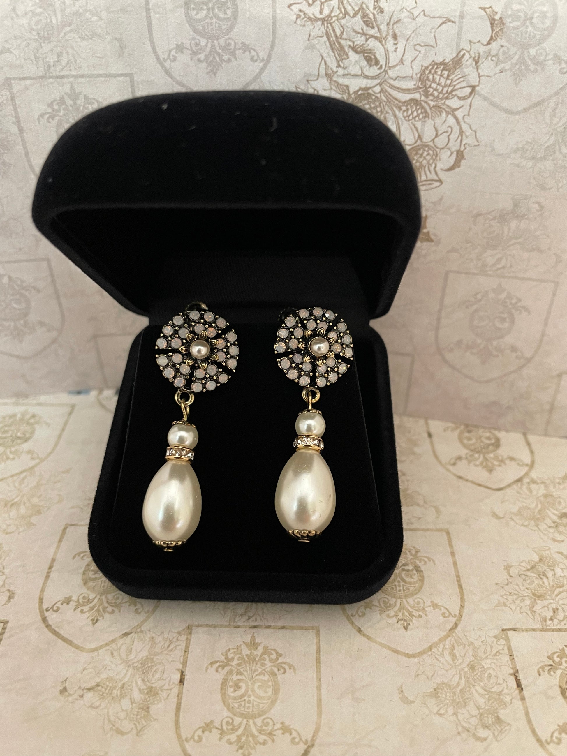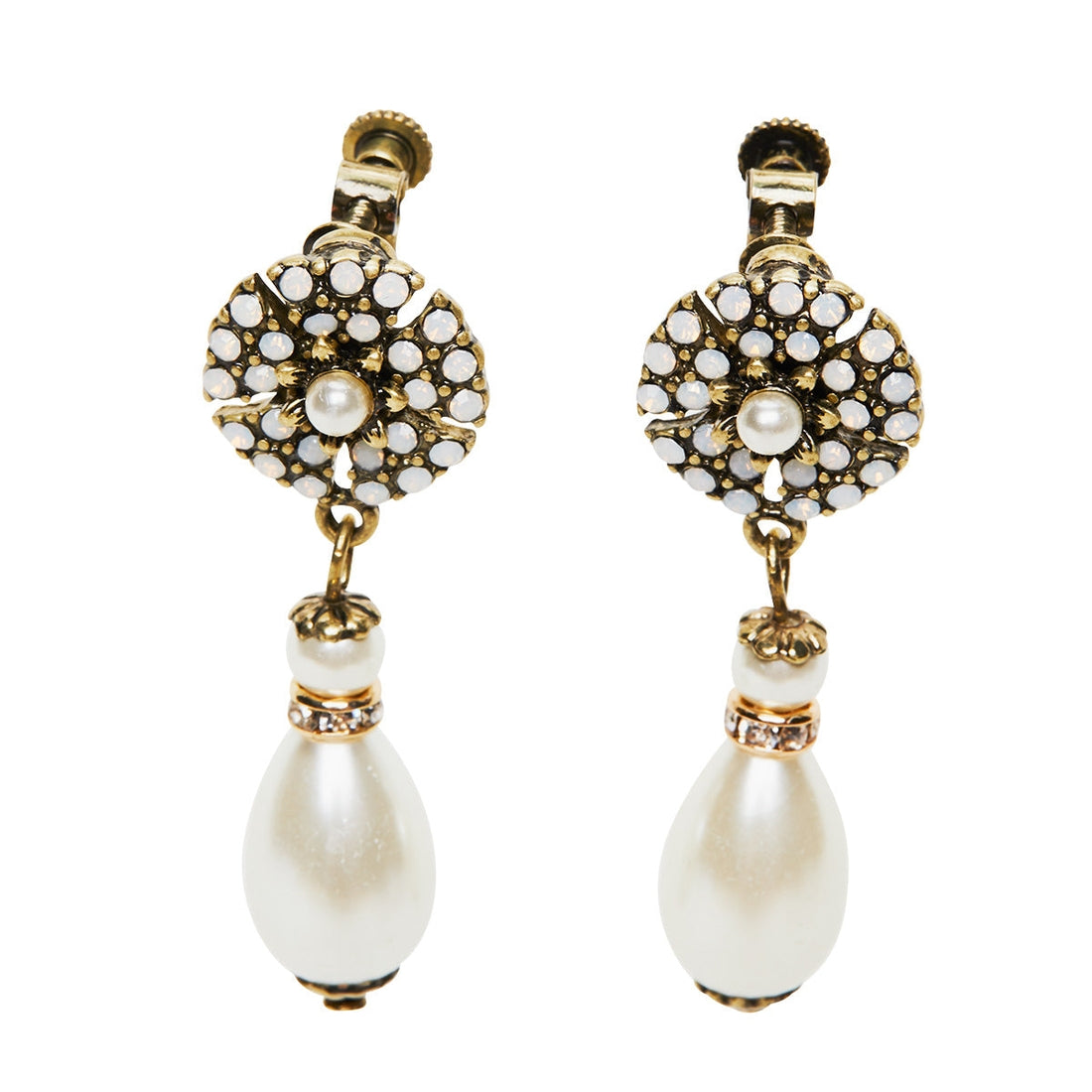 Lovett and Co pay homage to legendary designer Miriam Haskell, in these exquisite pearl and floral motif earrings. The design is unique and will be a piece to treasure and love.