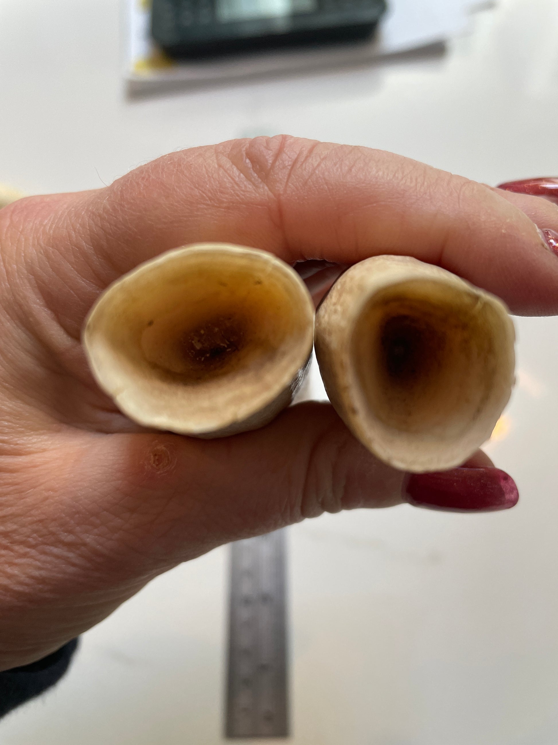 Matching pair of sperm whale teeth perfect for ceremonial jewellery.