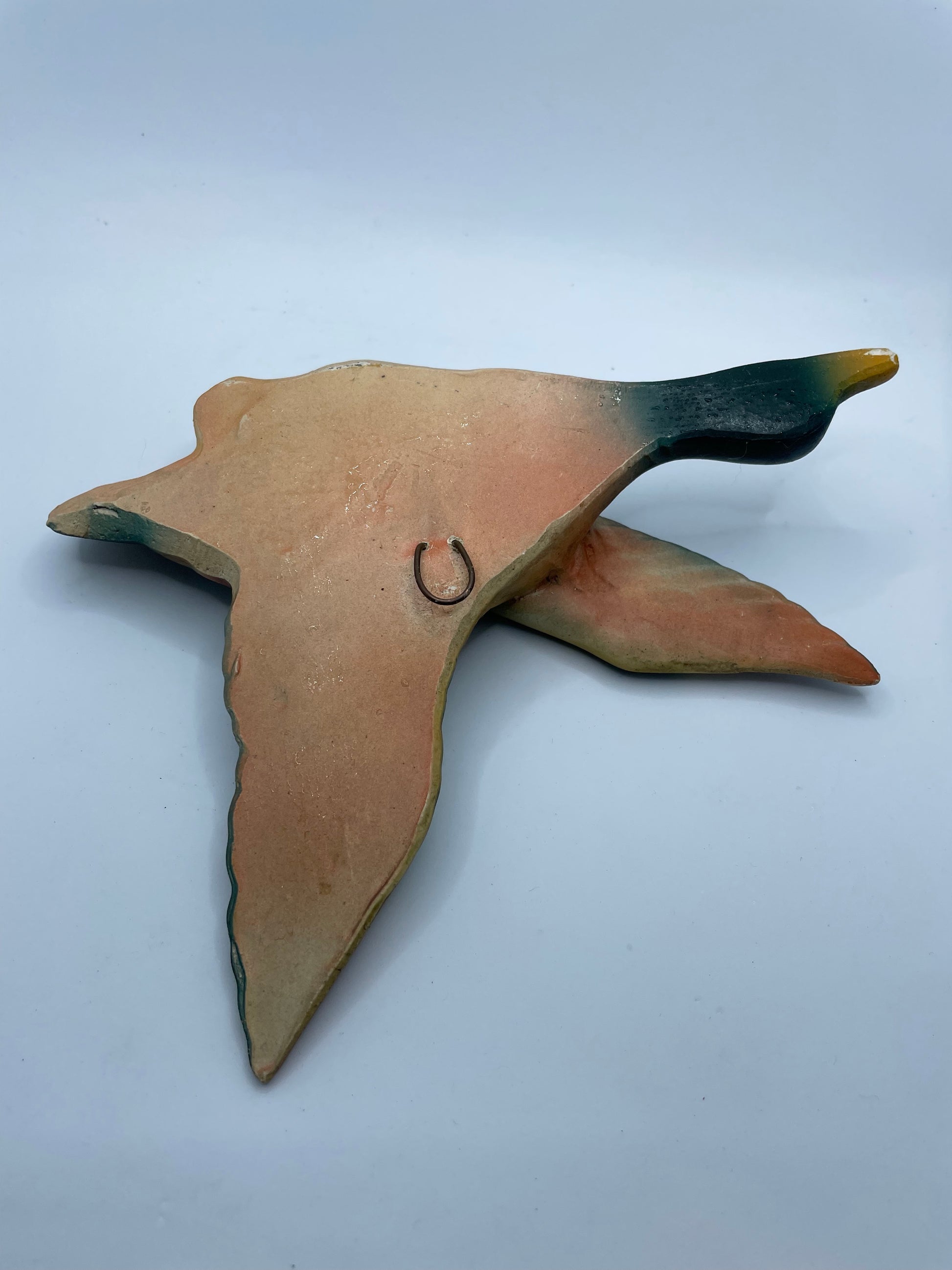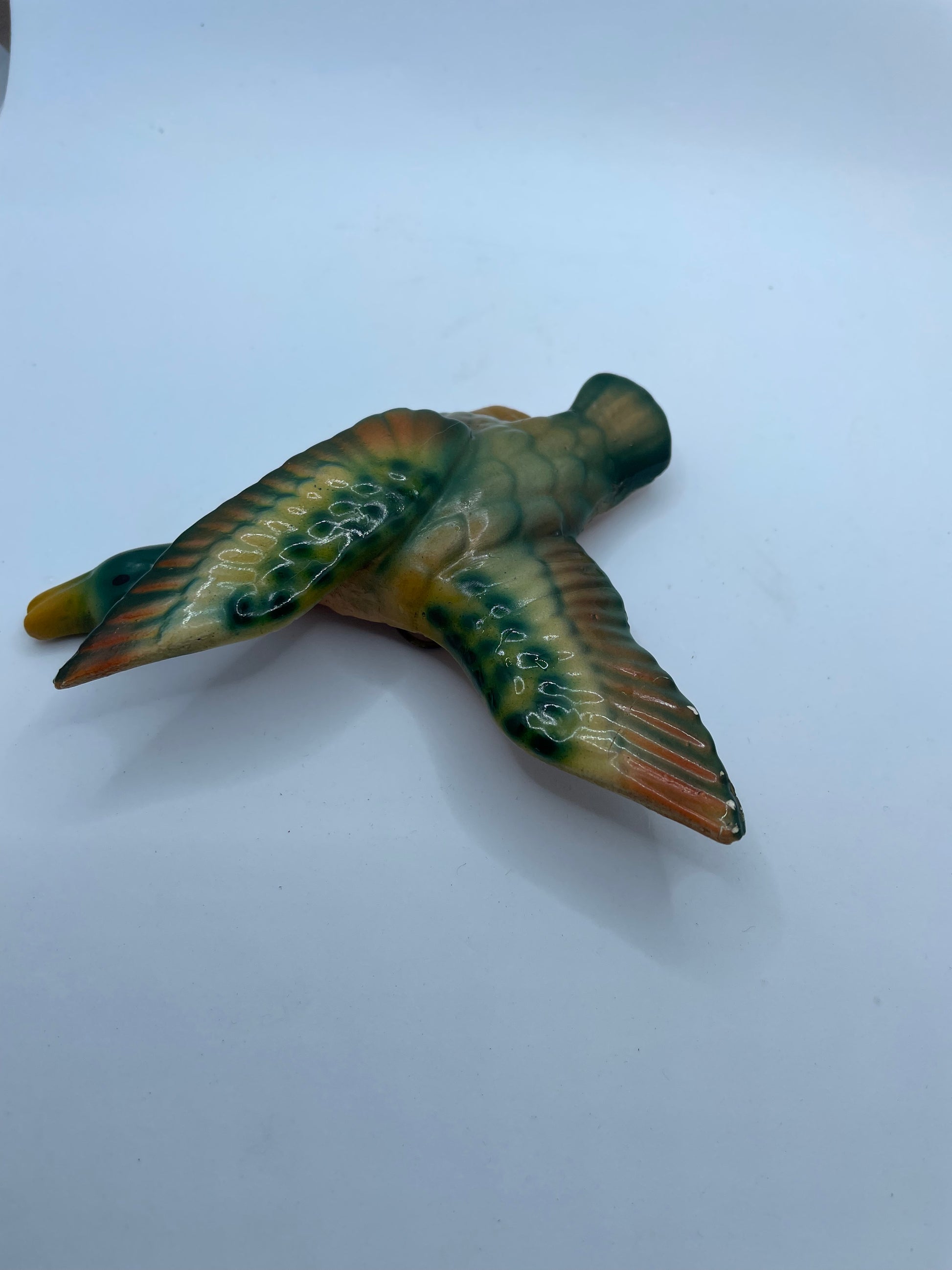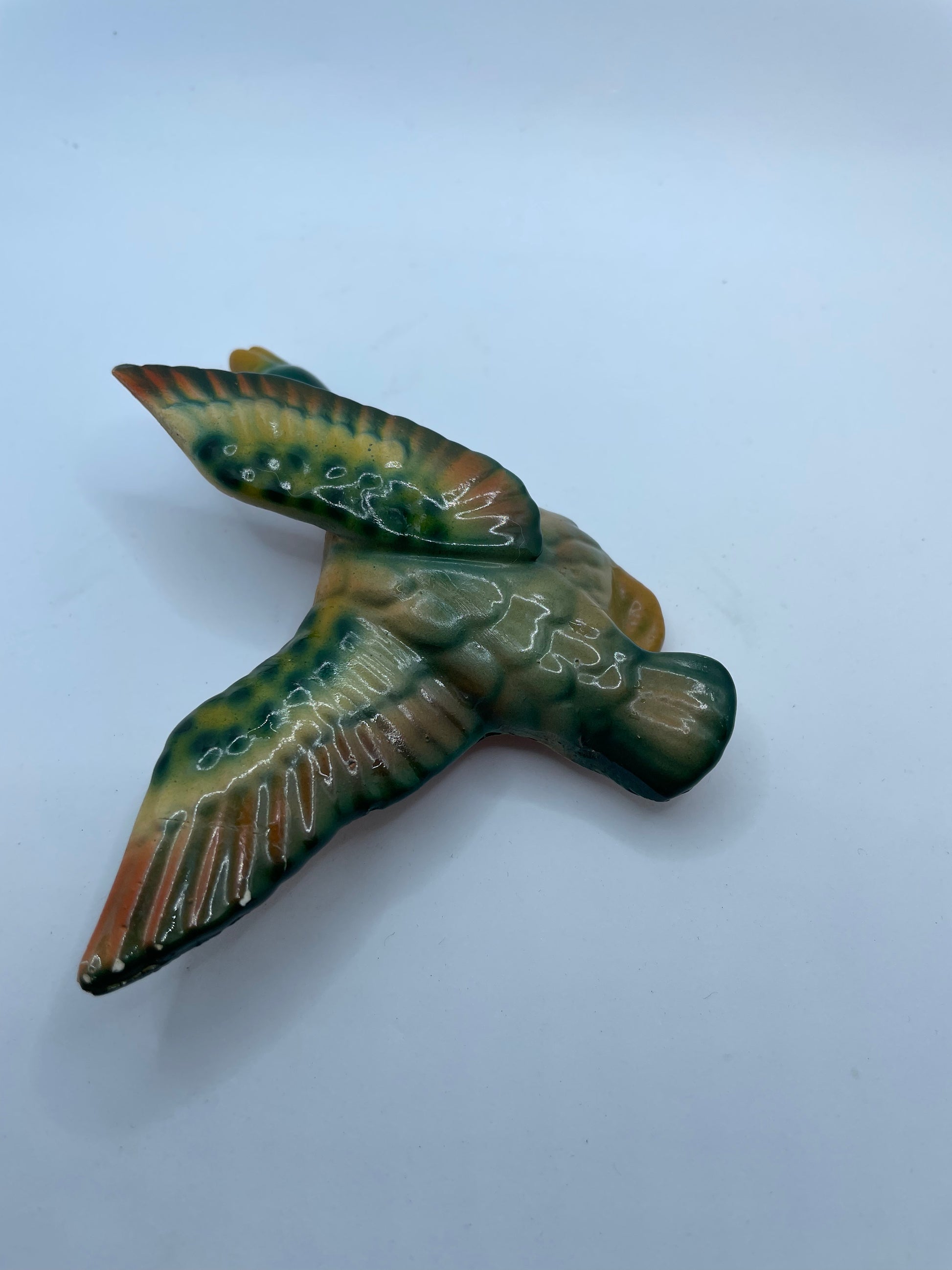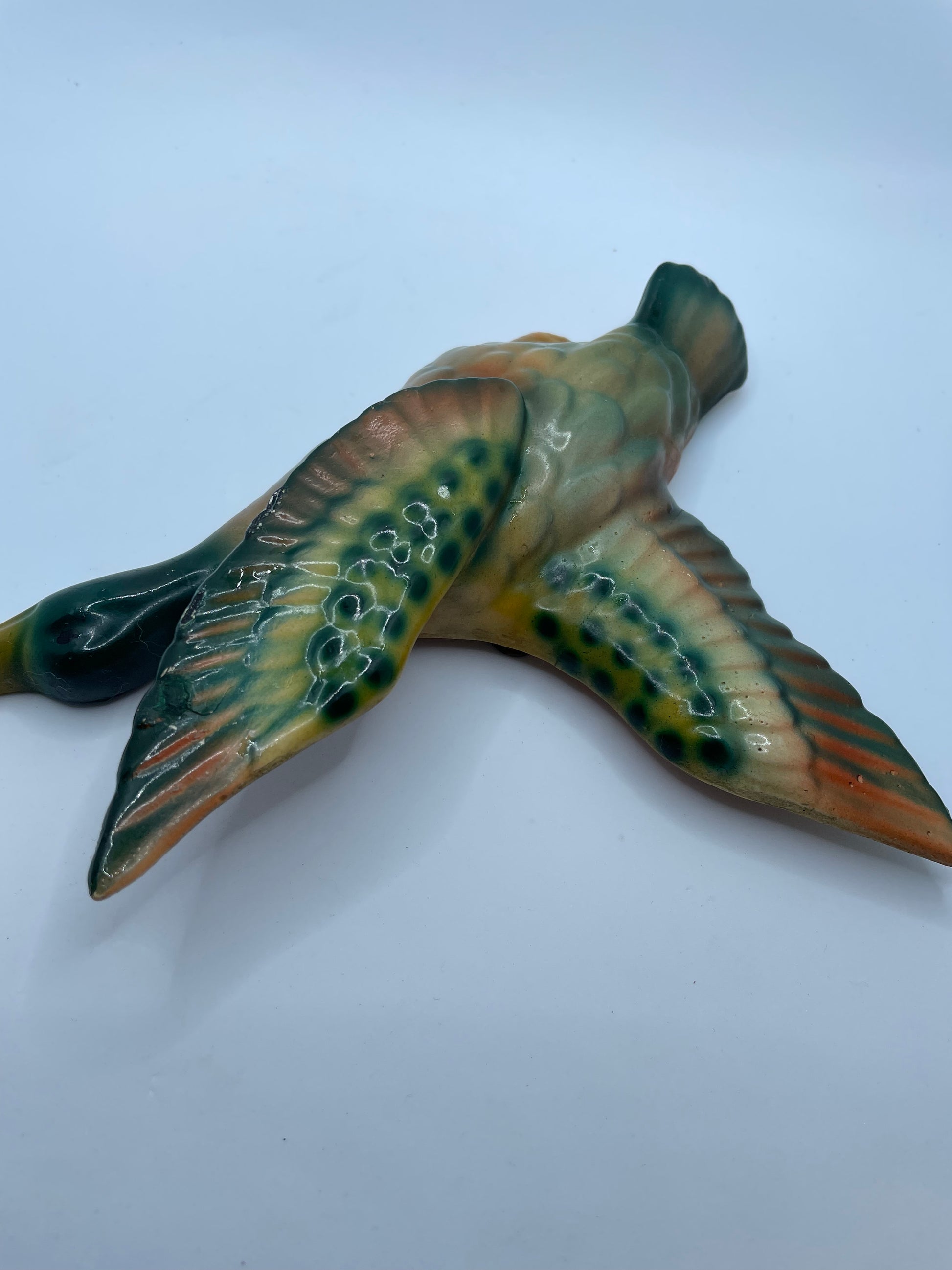 Large duck has paint missing on tail, medium duck has repair to wing tip and edge of wing, small duck has repair to wing in two places and head. Please look carefully at photos as these form part of the product description. They do have some faults, but these do not detract from this lovely set once on the wall.