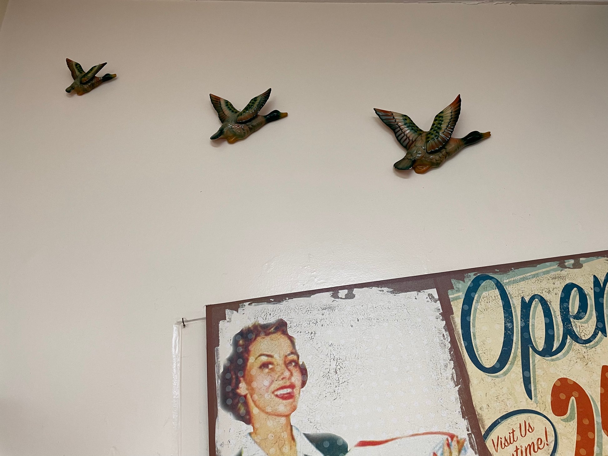 Beautiful set of three retro plaster wall ducks from my private collection. Gorgeous Autumn colours.