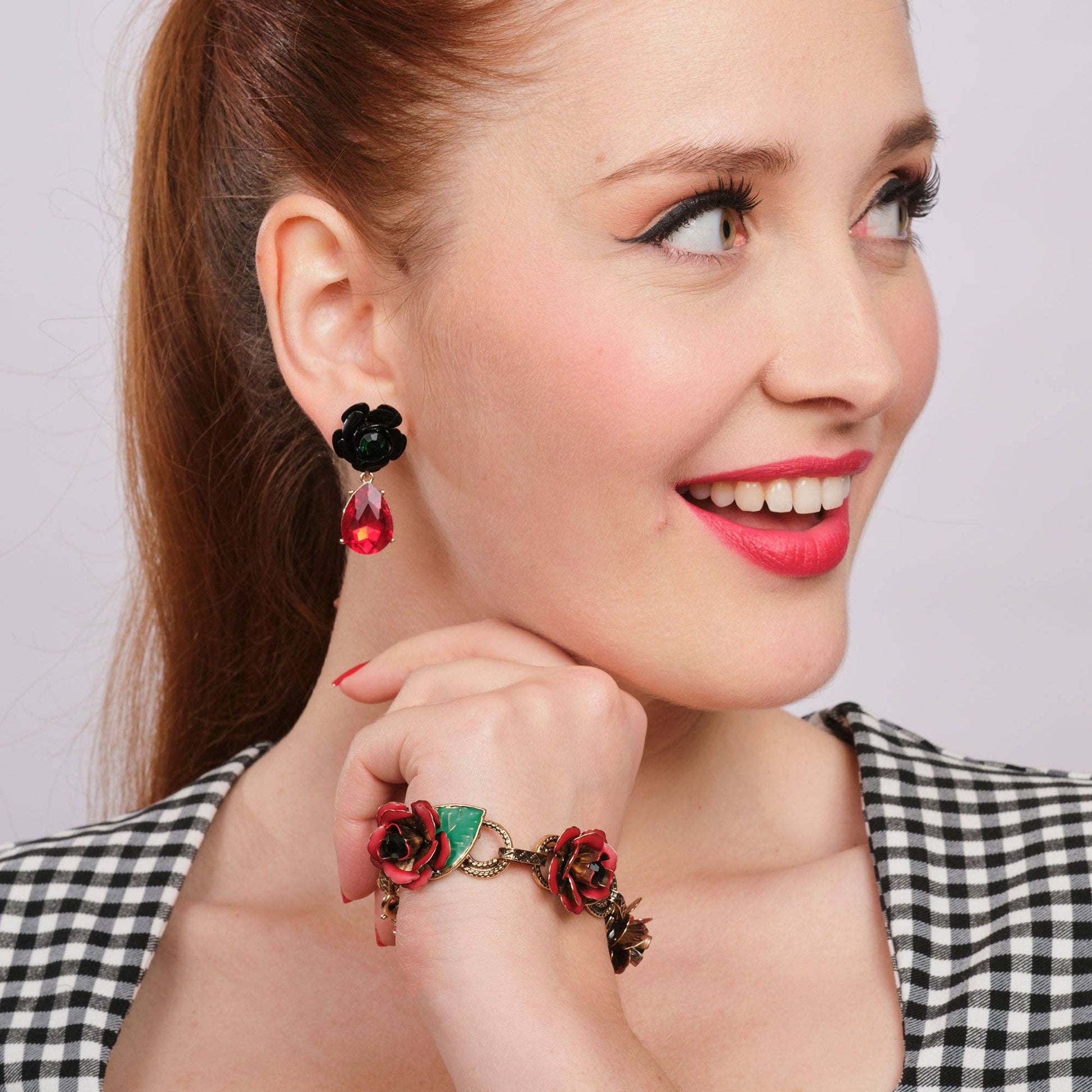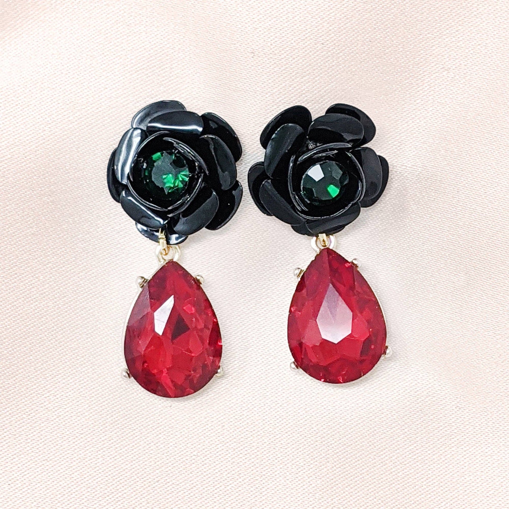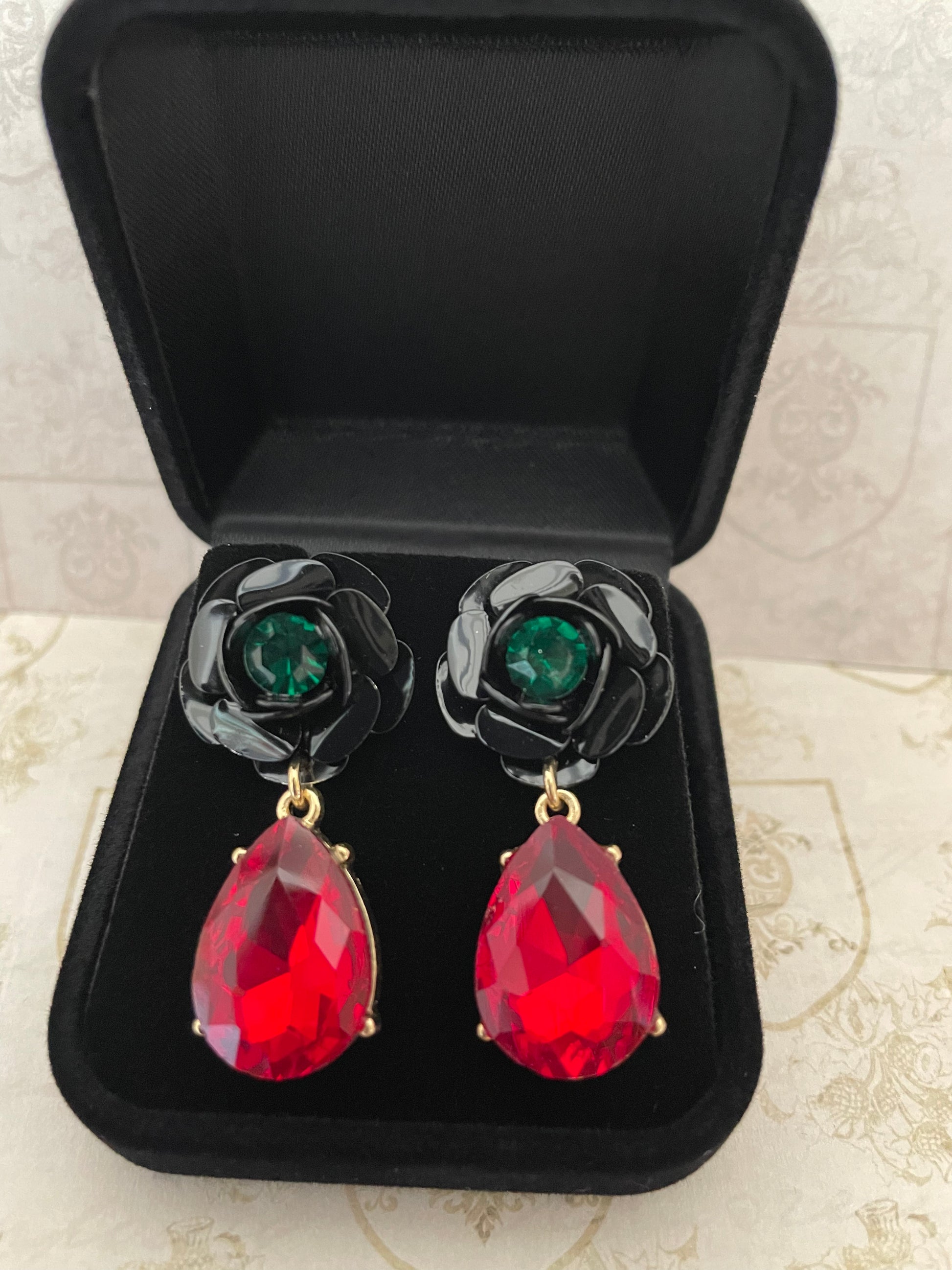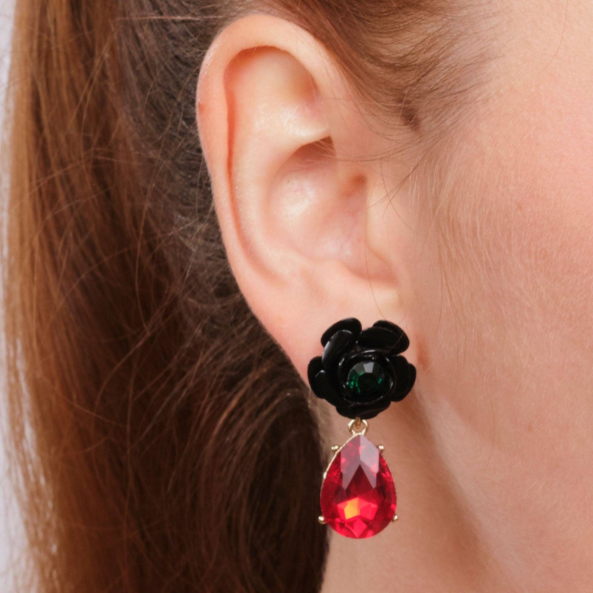 These stunning vintage style 1950s Rock and Rose Jewel Drop Earrings are sure to attract a great deal of attention.