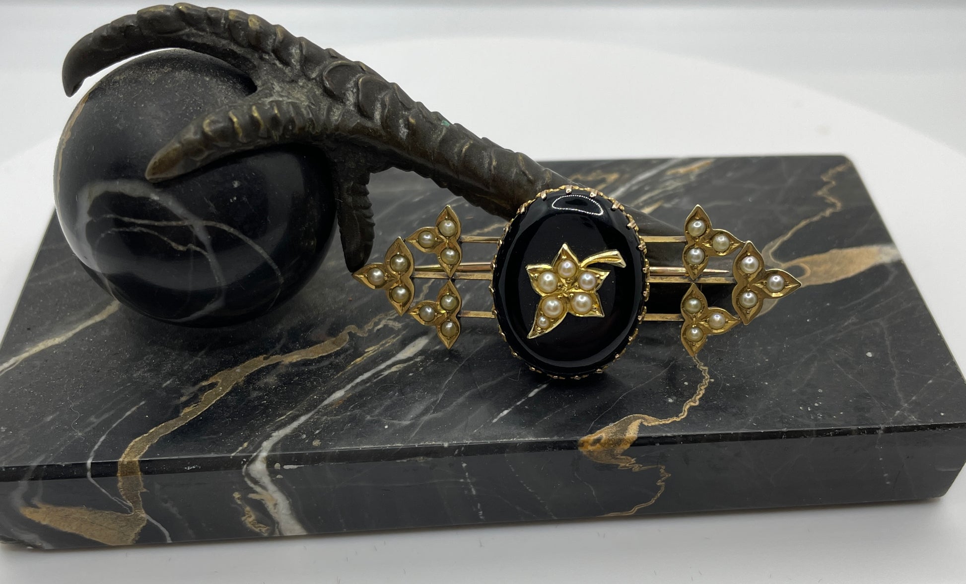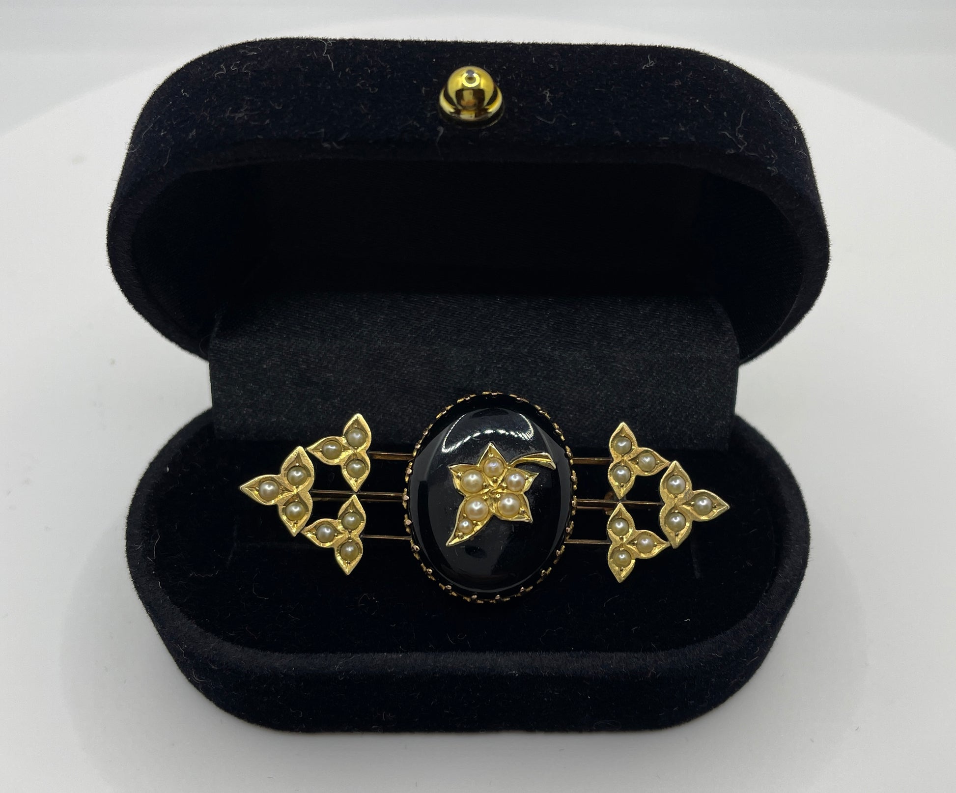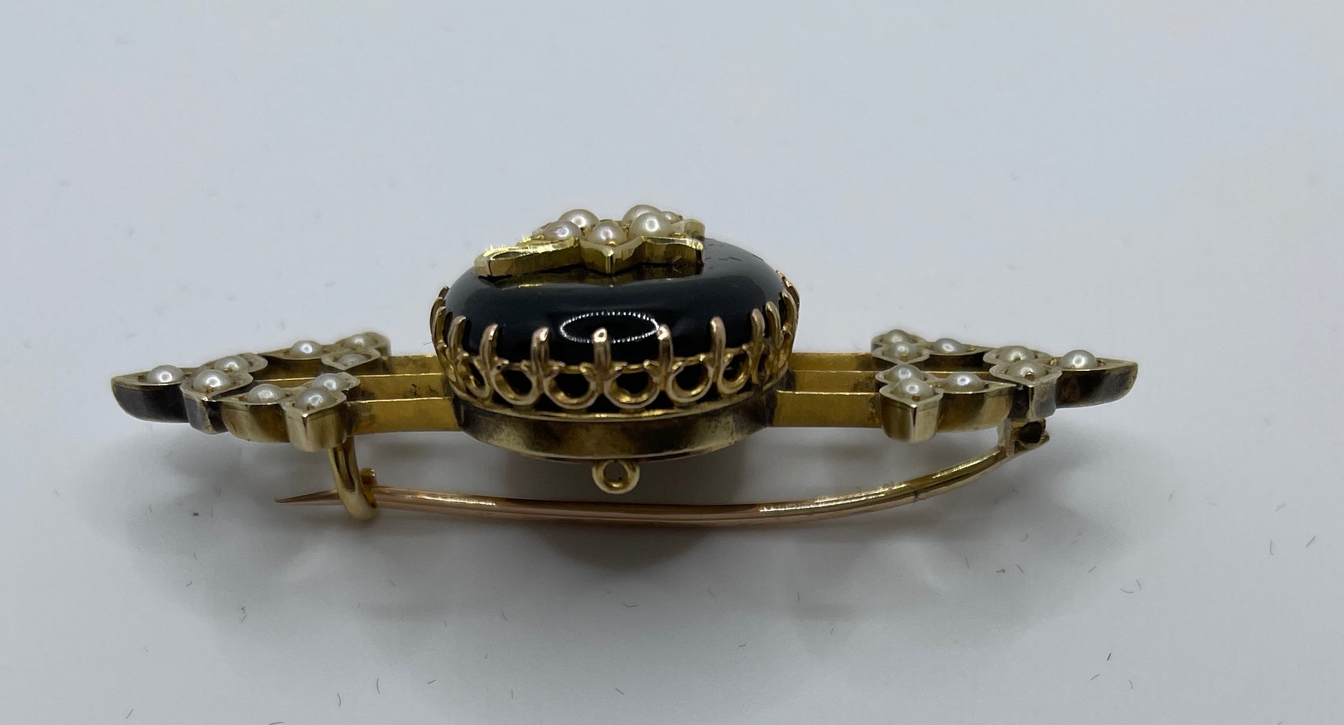 Victorian Pearl And Black Onyx Memorial Locket Brooch