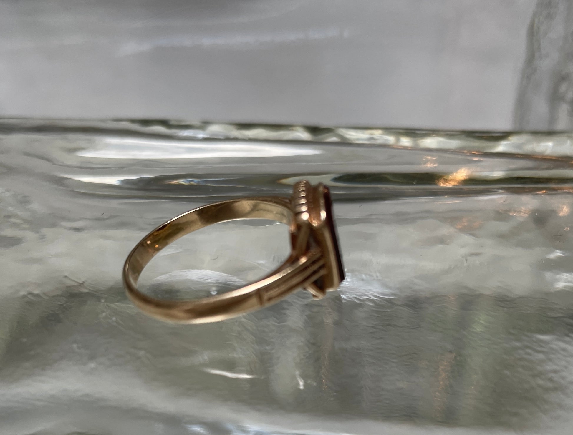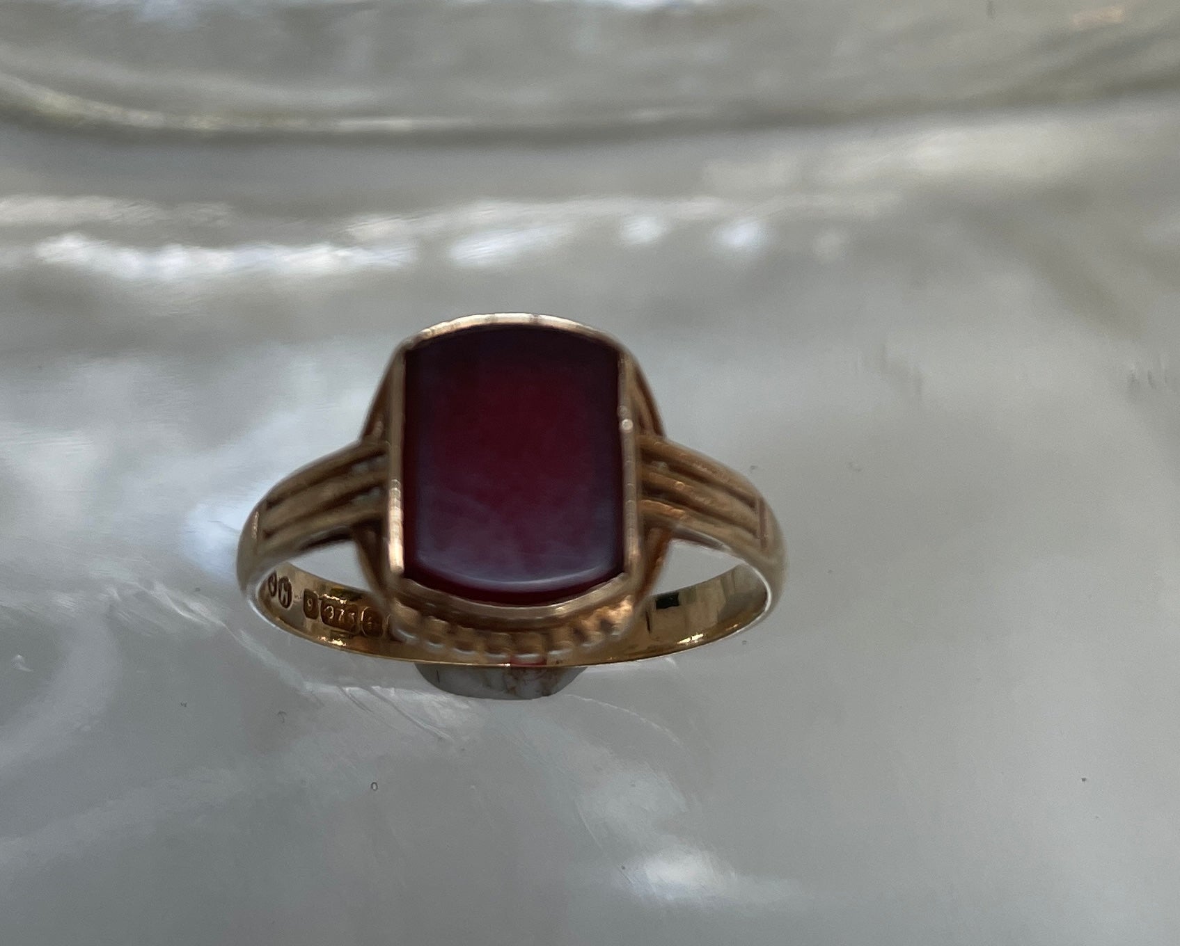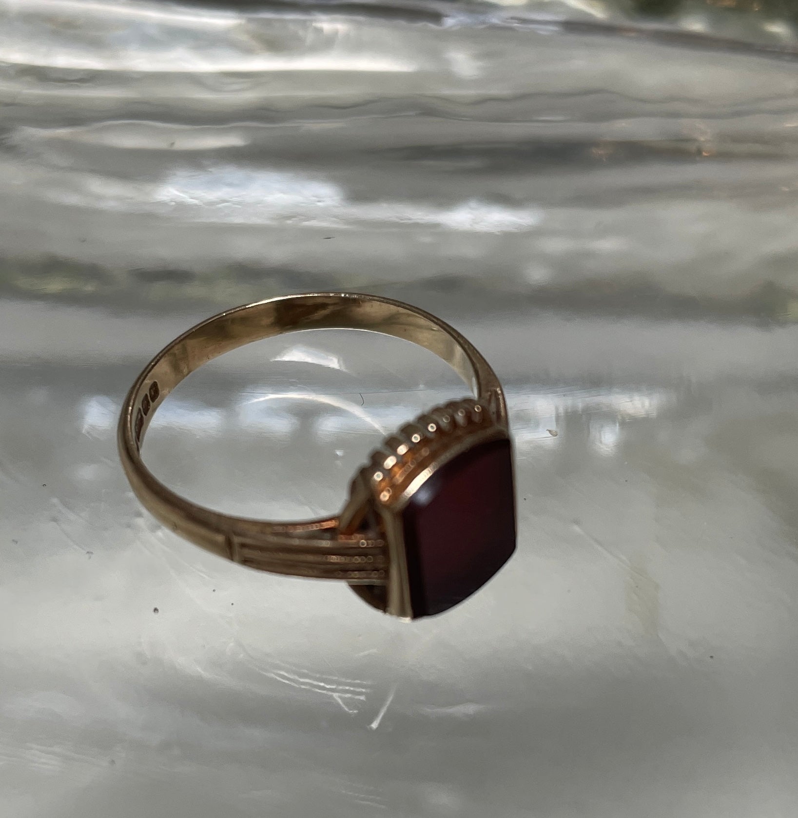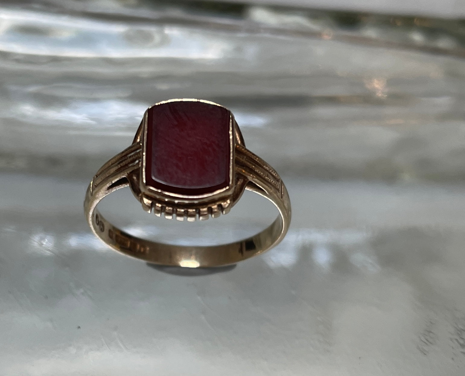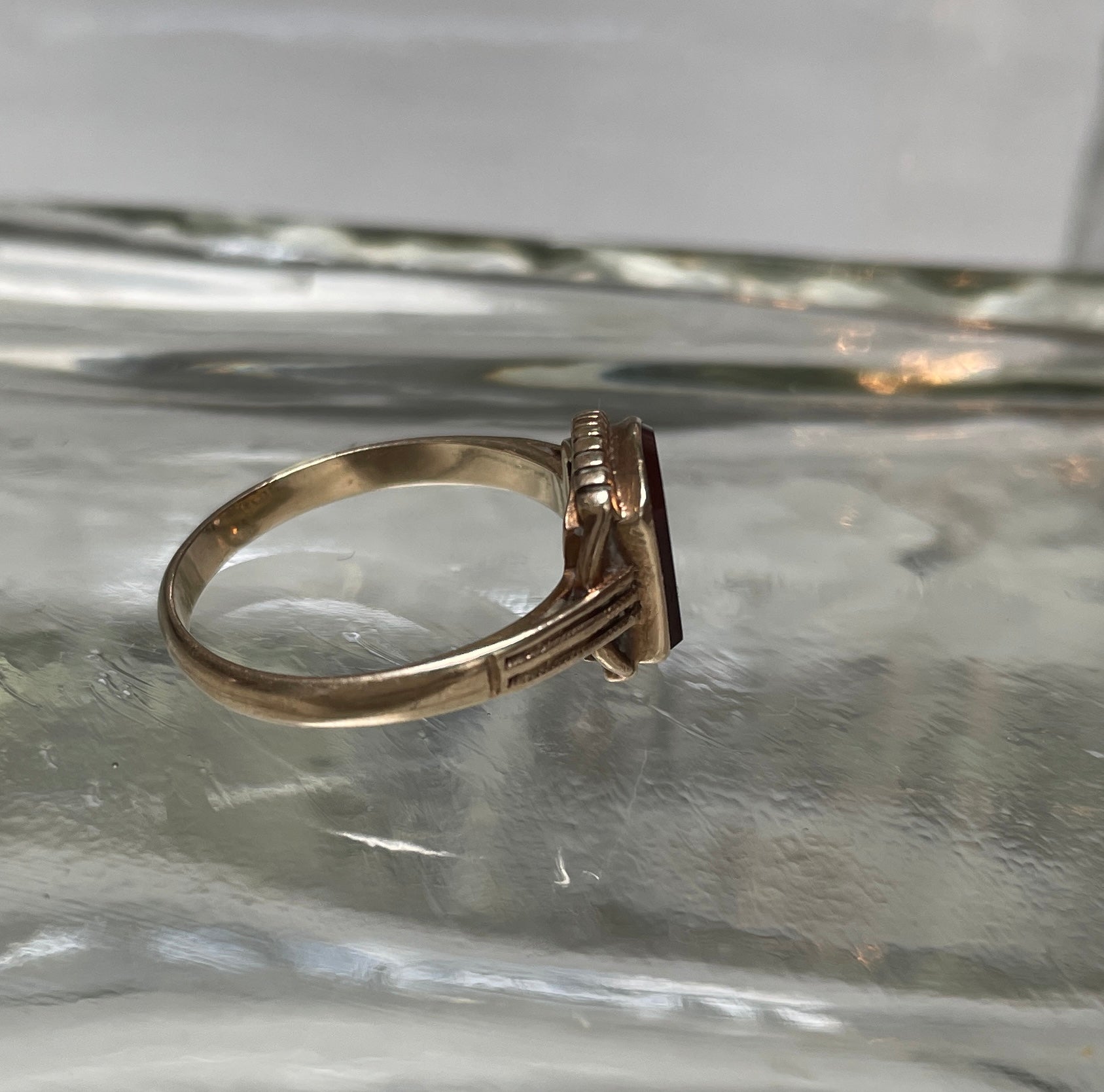 Vintage 9ct Gold carnelian signet ring hallmarked for Birmingham 1970. Milligrain feature either side of stone setting.