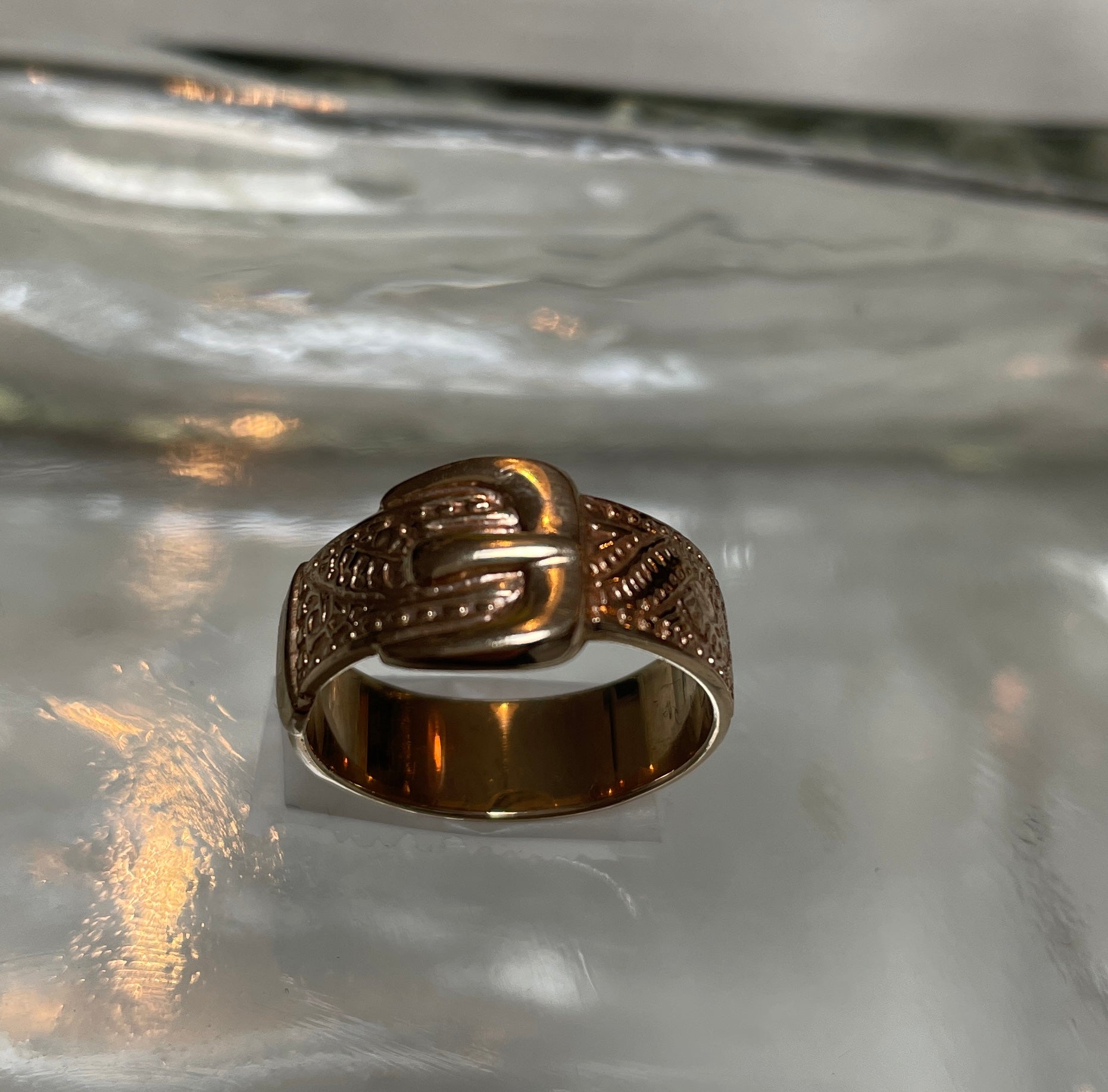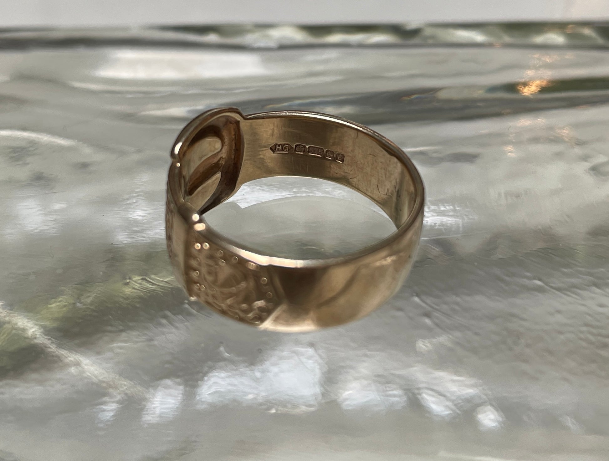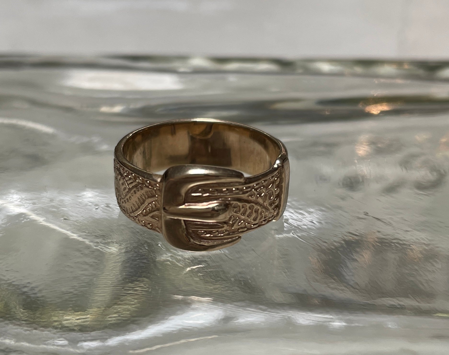 Vintage Engraved Buckle 9ct Gold Ring