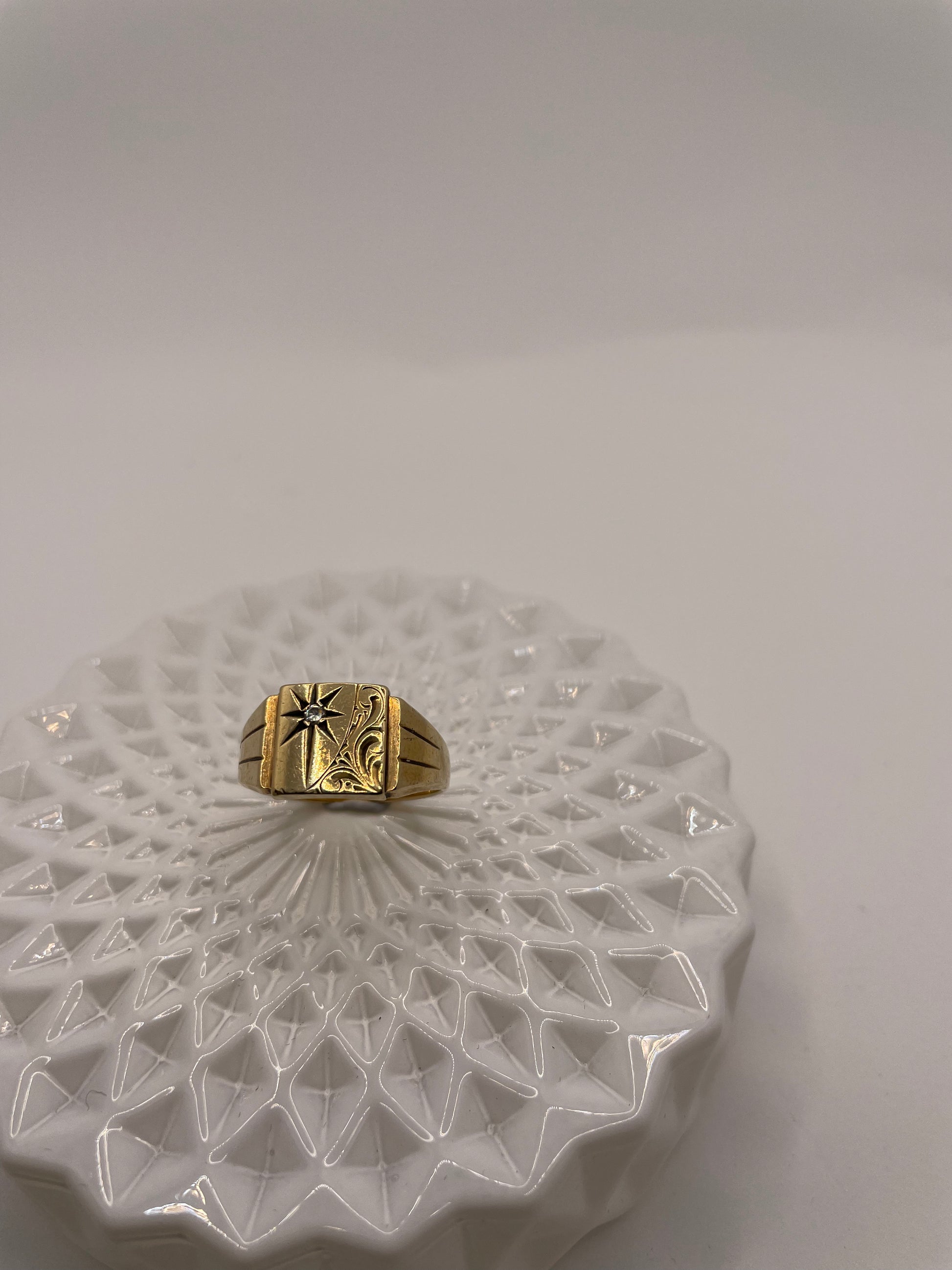Vintage Signet Ring With Diamond Highlight